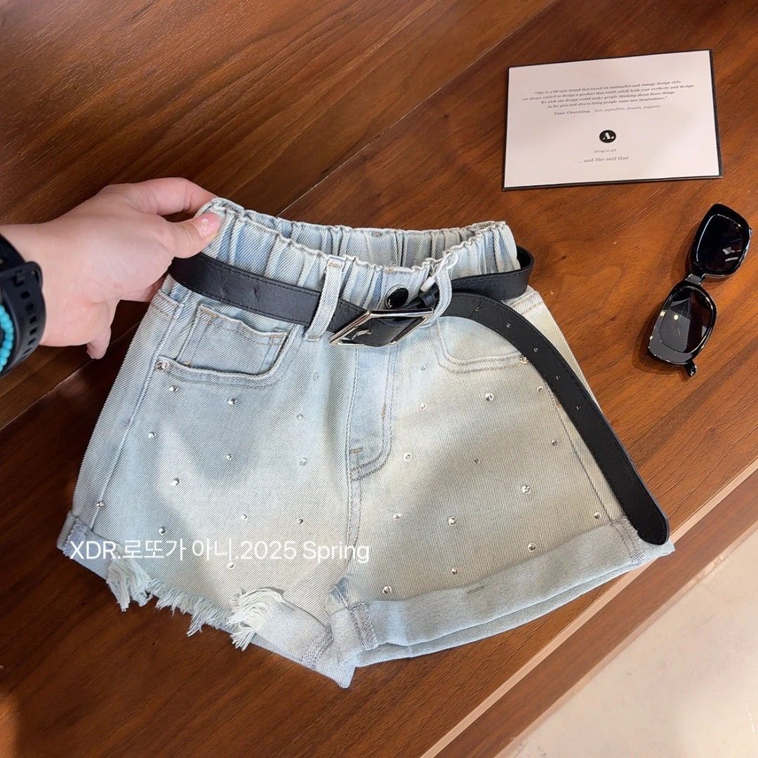 여아 여름 데님 반바지 2026 아동 한국 스타일 큰아이 바지 여아 패셔너블한 다이아몬드 장식 여름 핫팬츠
