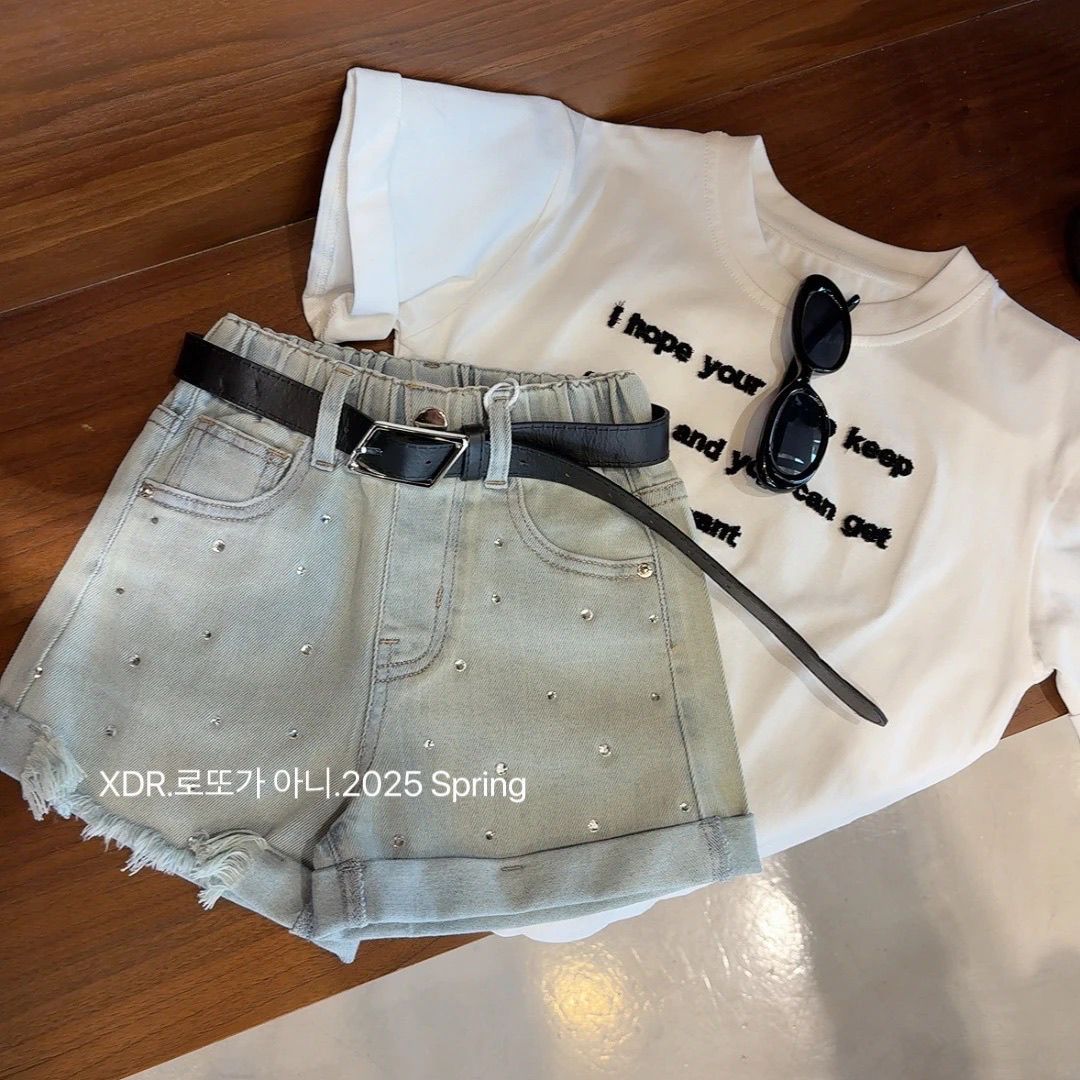 여아 여름 데님 반바지 2026 아동 한국 스타일 큰아이 바지 여아 패셔너블한 다이아몬드 장식 여름 핫팬츠스토어 가기