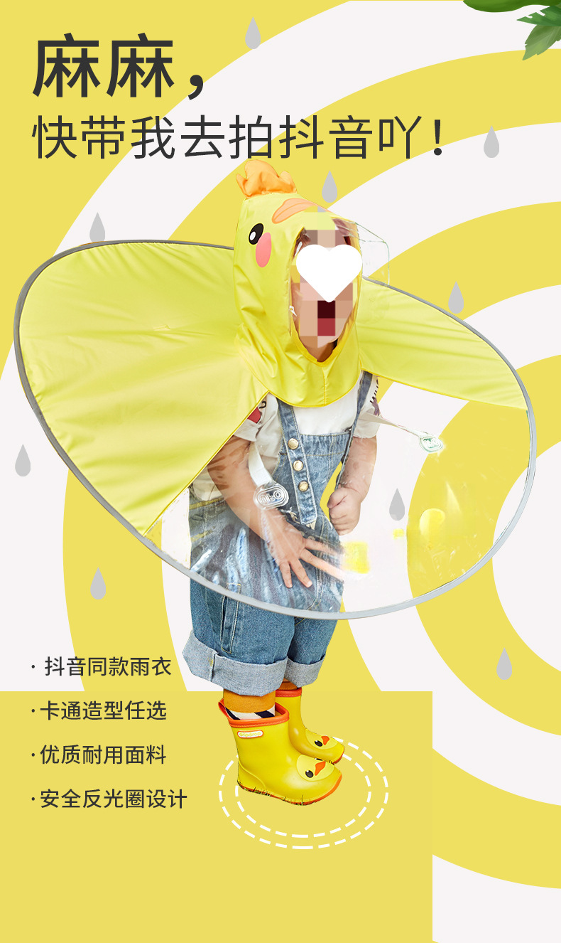 비옷, 어린이 비옷, 아기 어린이 망토, 비행접시 비옷, 남성 및 여성 인터넷 연예인 작은 노란색 오리 비옷, 드롭 배송스토어 가기