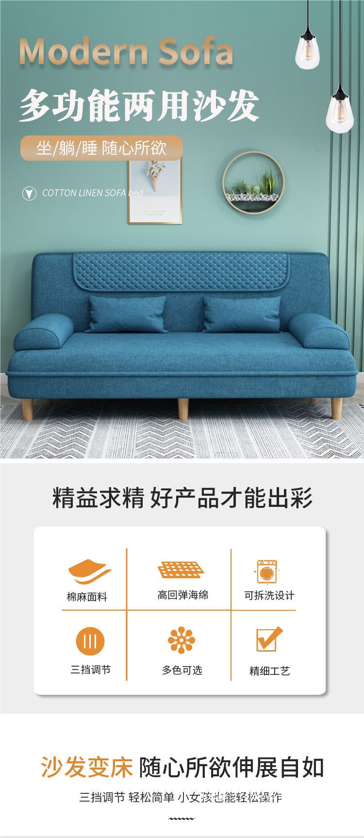 접이식 소파 베드 이중 목적 작은 아파트 소파 임대 방 침실 거실 간단한 패브릭 소파 도매스토어 가기