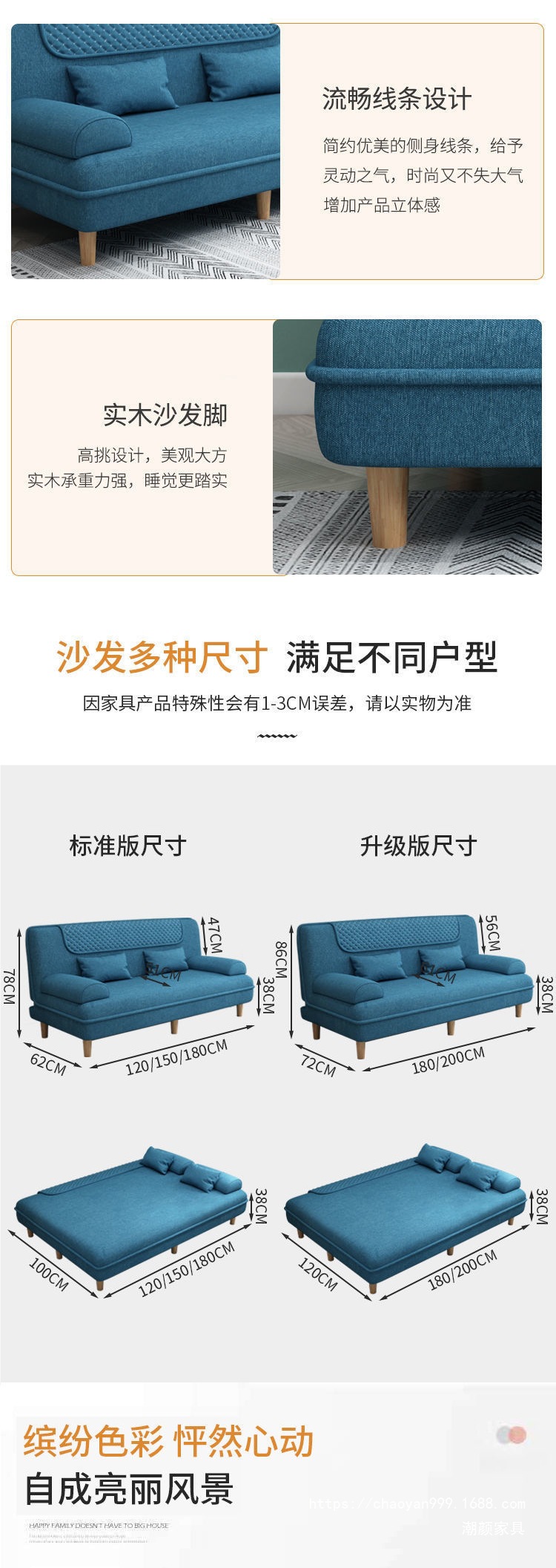 접이식 소파 베드 이중 목적 작은 아파트 소파 임대 방 침실 거실 간단한 패브릭 소파 도매