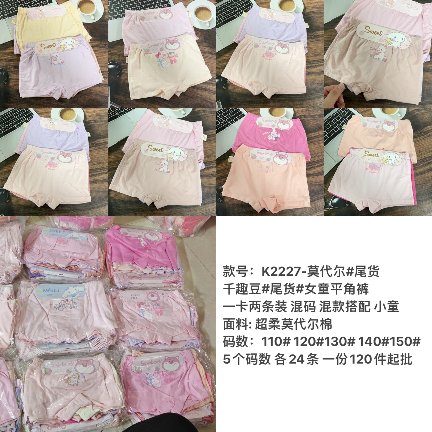 여아용 아동용 바지 브랜드 Qianqudou 부드럽고 통기성이 뛰어난 모달 두 개의 카드 팩 아동용 여아 복서 팬티 도매