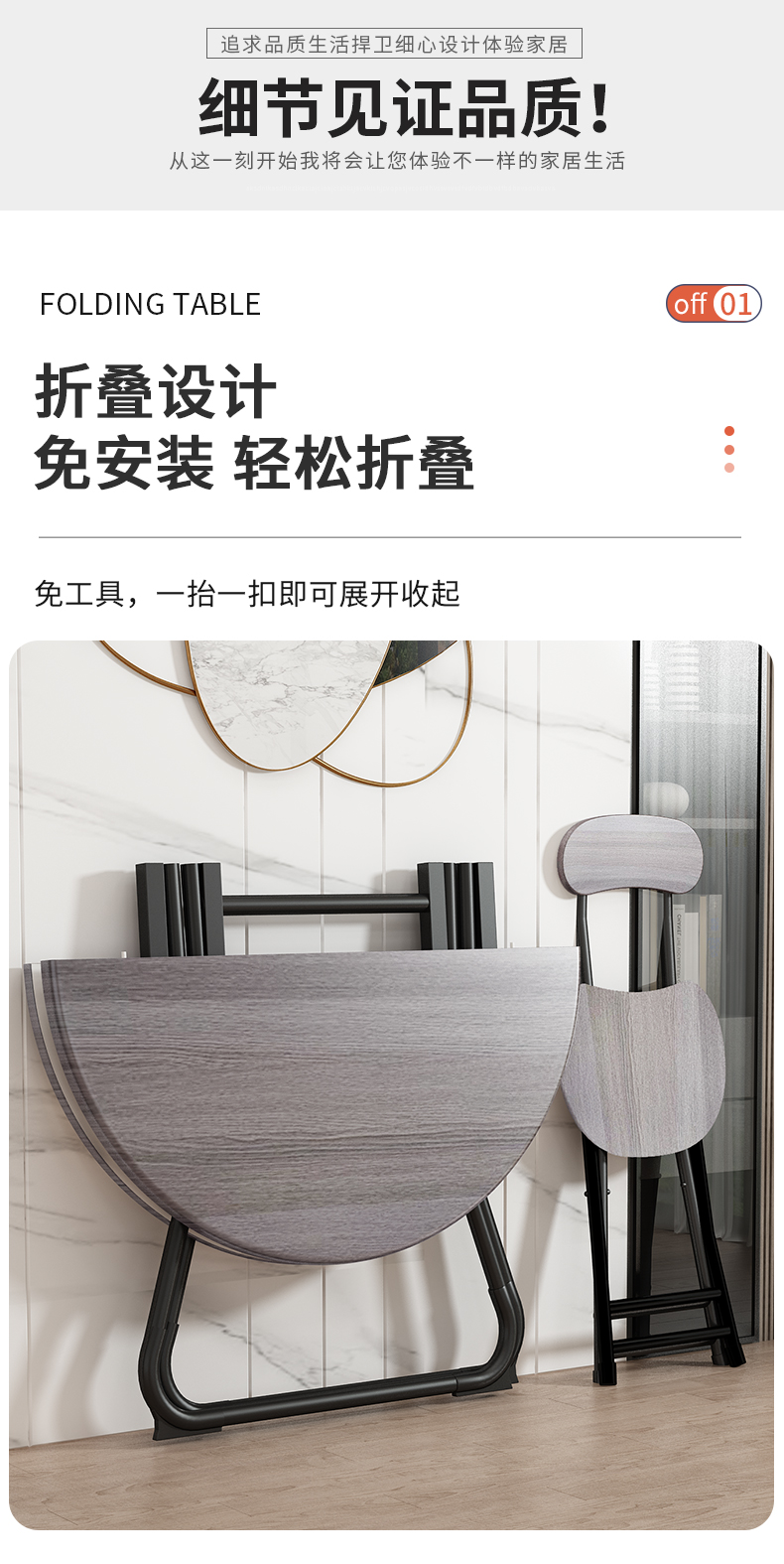 접이식 원형 테이블, 소형 식탁, 접이식 테이블, 식탁, 발코니 레저 테이블, 휴대용 스톨 테이블과 의자, 헤우스토어 가기