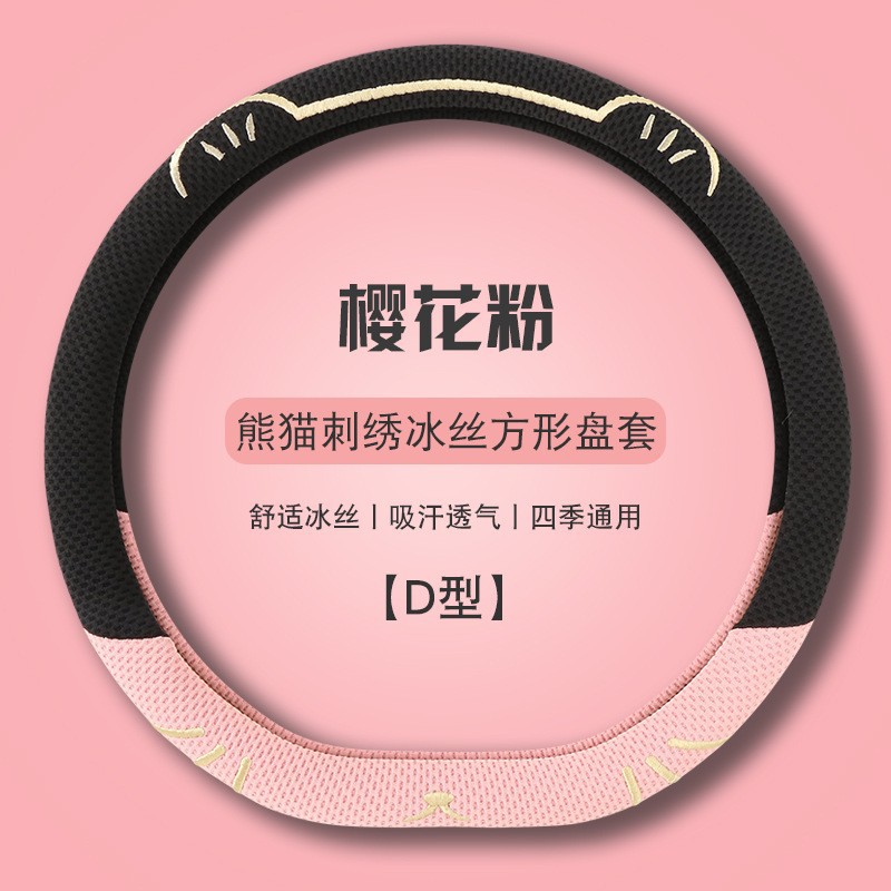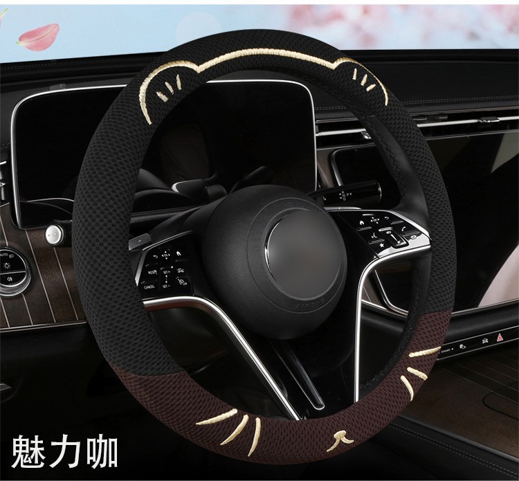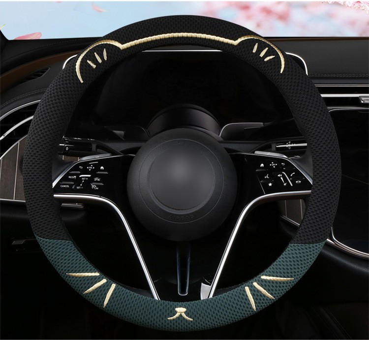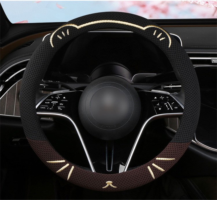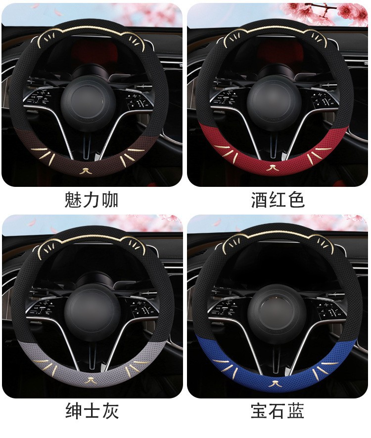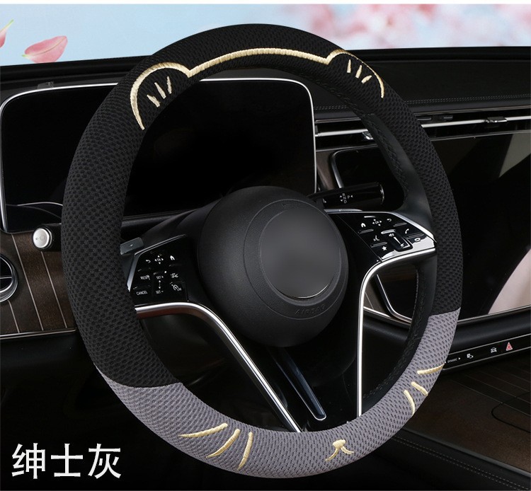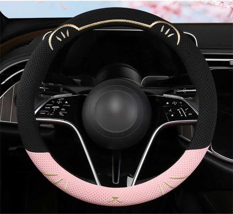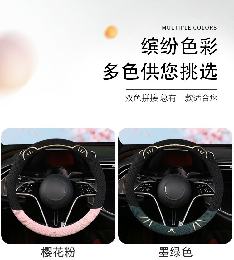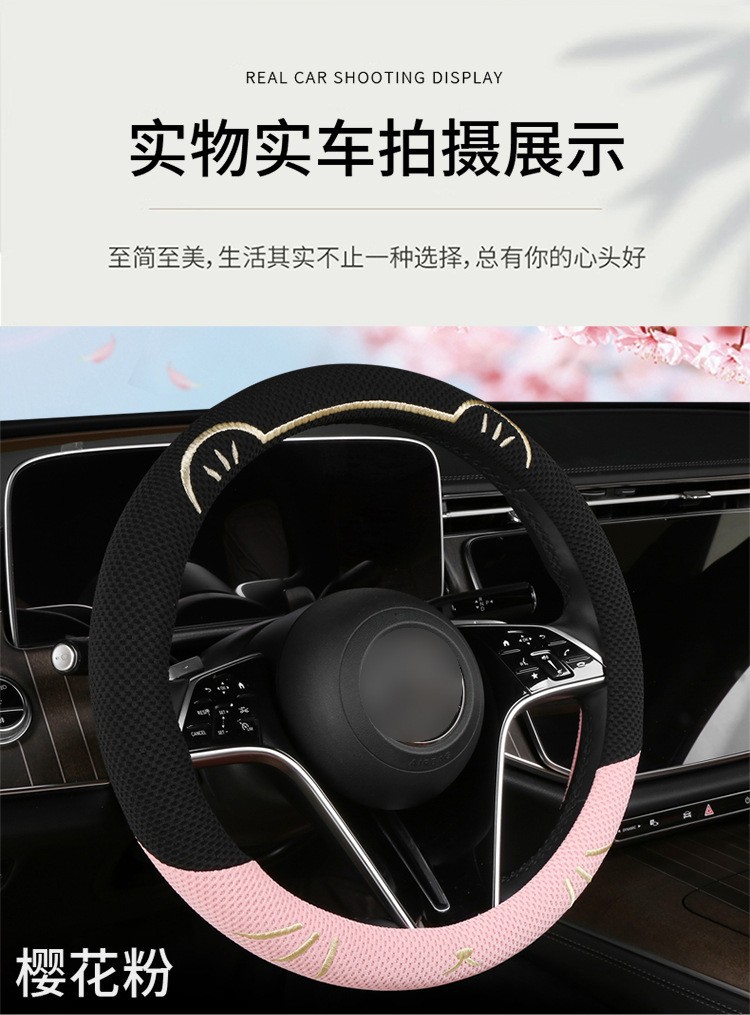 고양이 귀 아이스 실크 스티어링 휠 커버, 올 시즌 범용, 가벼운 럭셔리, 초박형, 고급, 땀 흡수 및 미끄럼 방지 자동차 스티어링 휠 커버