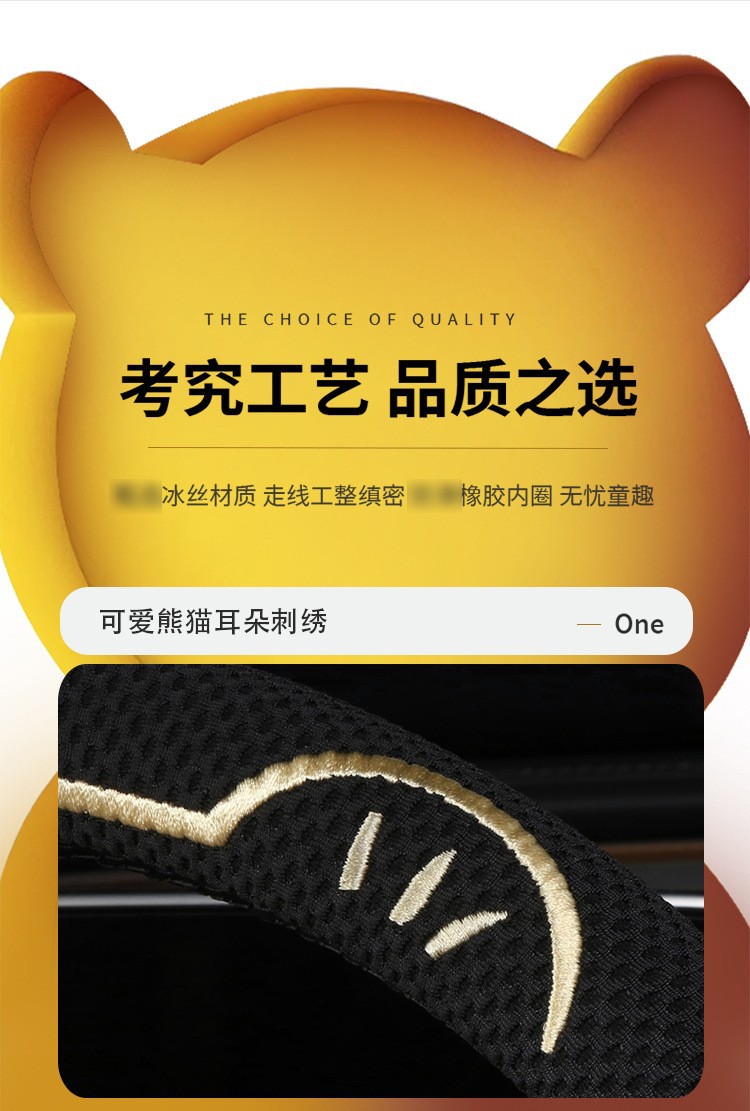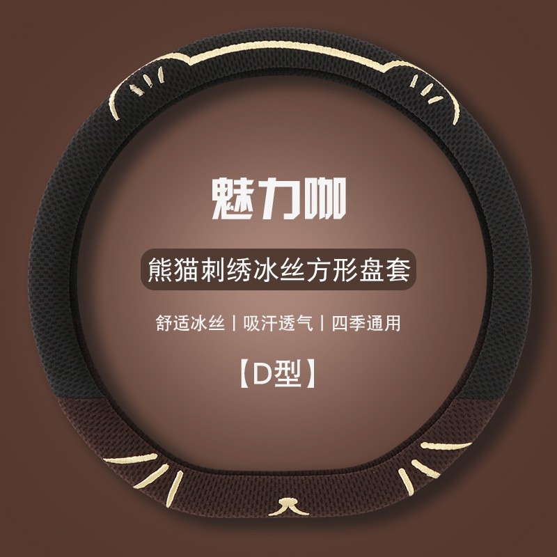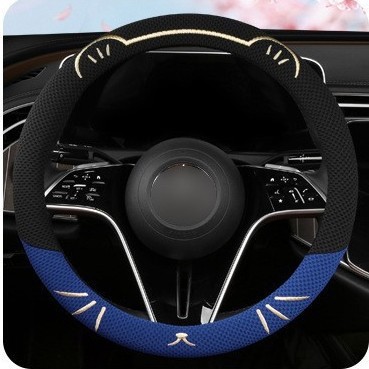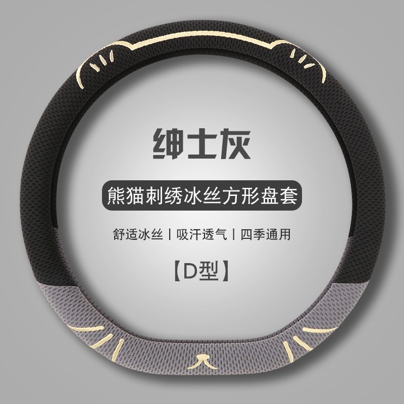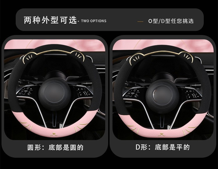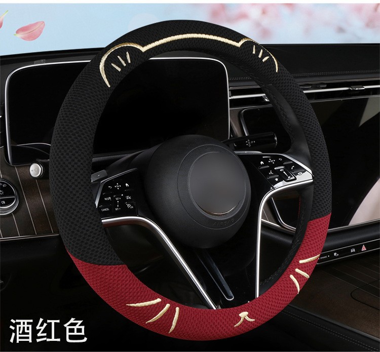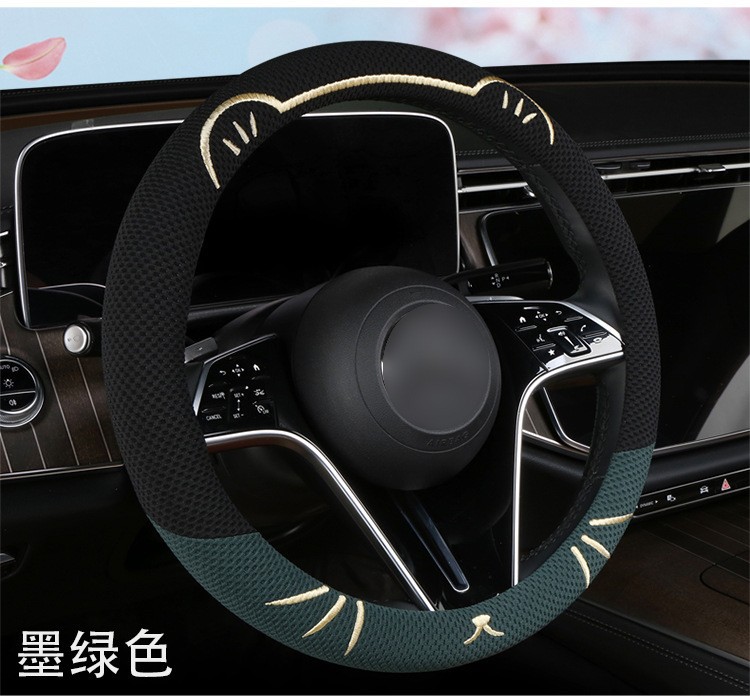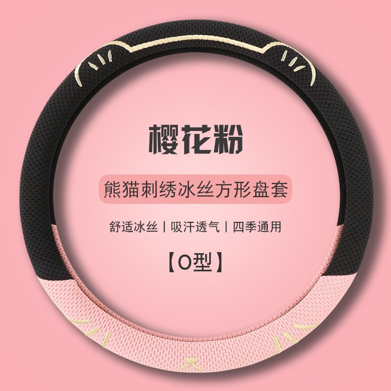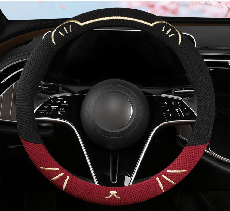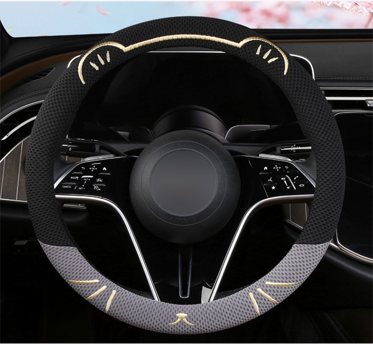 고양이 귀 아이스 실크 스티어링 휠 커버, 올 시즌 범용, 가벼운 럭셔리, 초박형, 고급, 땀 흡수 및 미끄럼 방지 자동차 스티어링 휠 커버