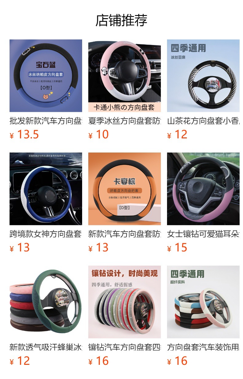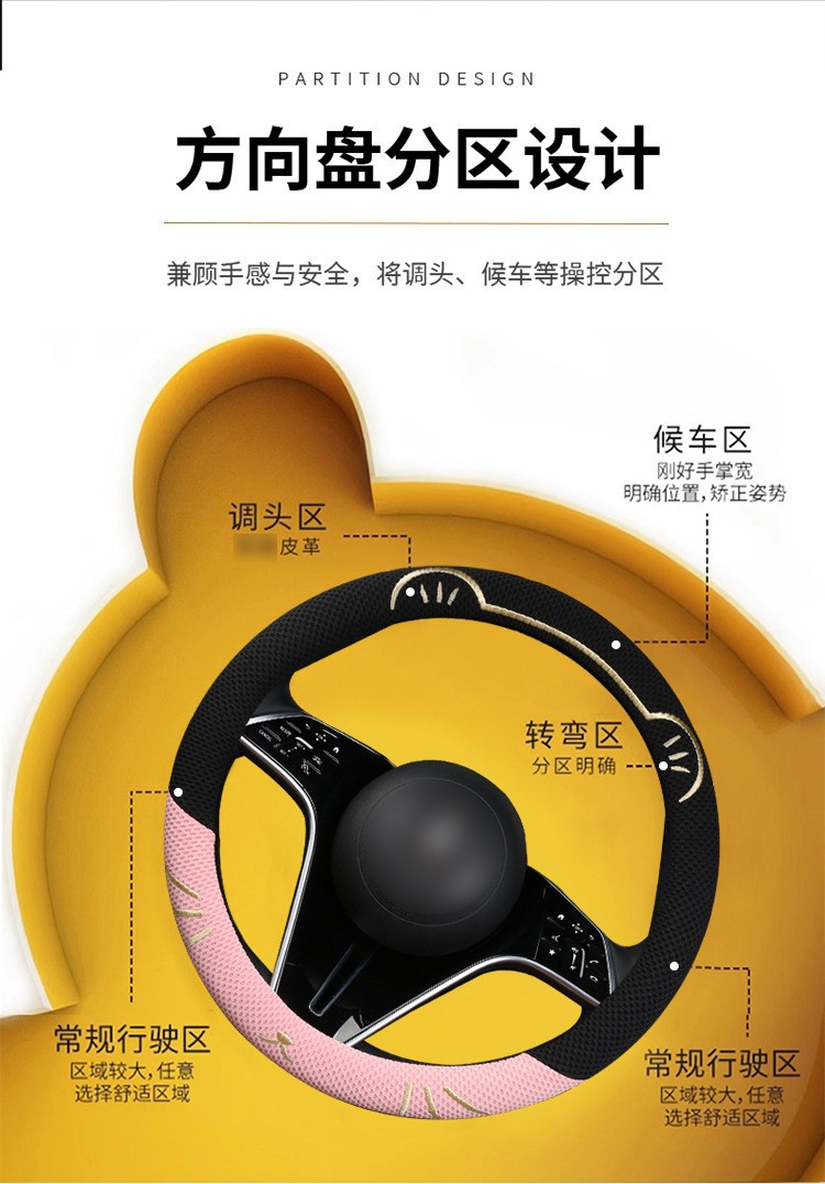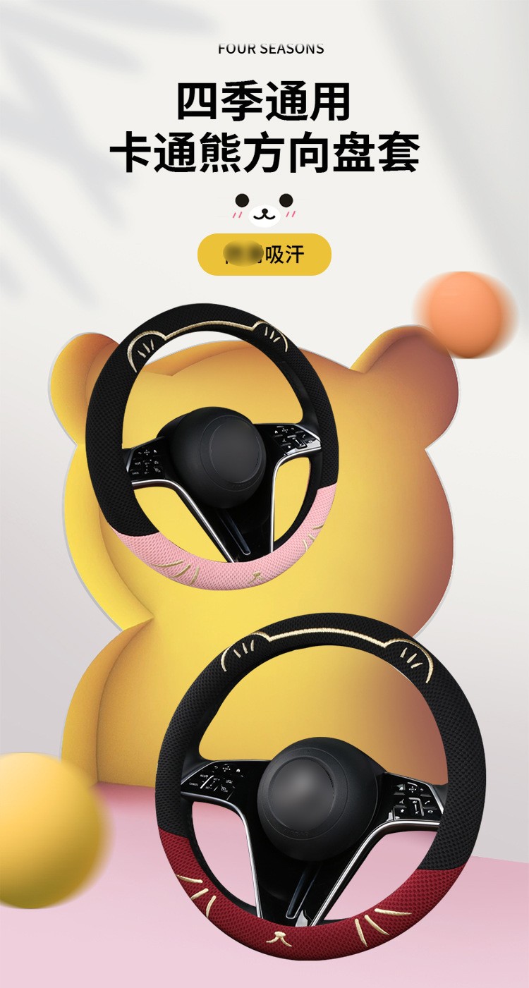 고양이 귀 아이스 실크 스티어링 휠 커버, 올 시즌 범용, 가벼운 럭셔리, 초박형, 고급, 땀 흡수 및 미끄럼 방지 자동차 스티어링 휠 커버스토어 가기