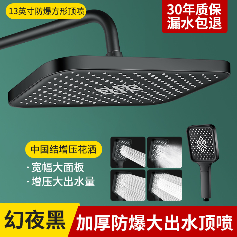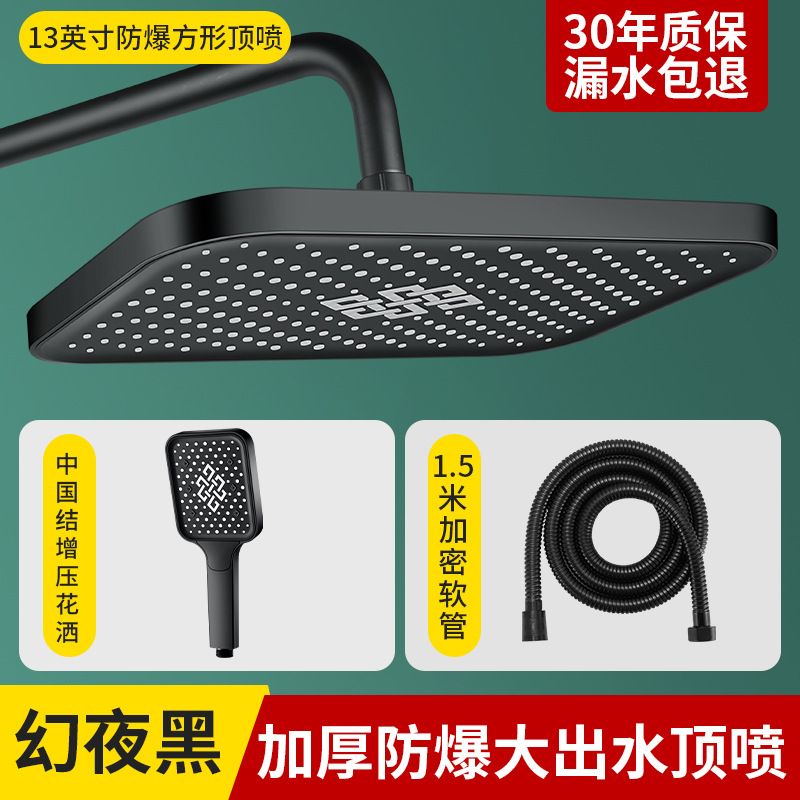 • 초대형 제트 블랙? 13inch 스퀘어 탑 스프레이 [슈퍼차지 대형 배수구 20년 보증]
