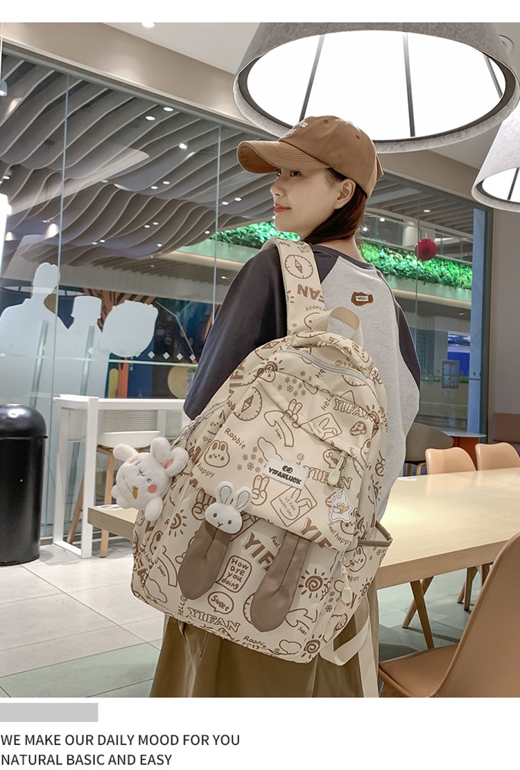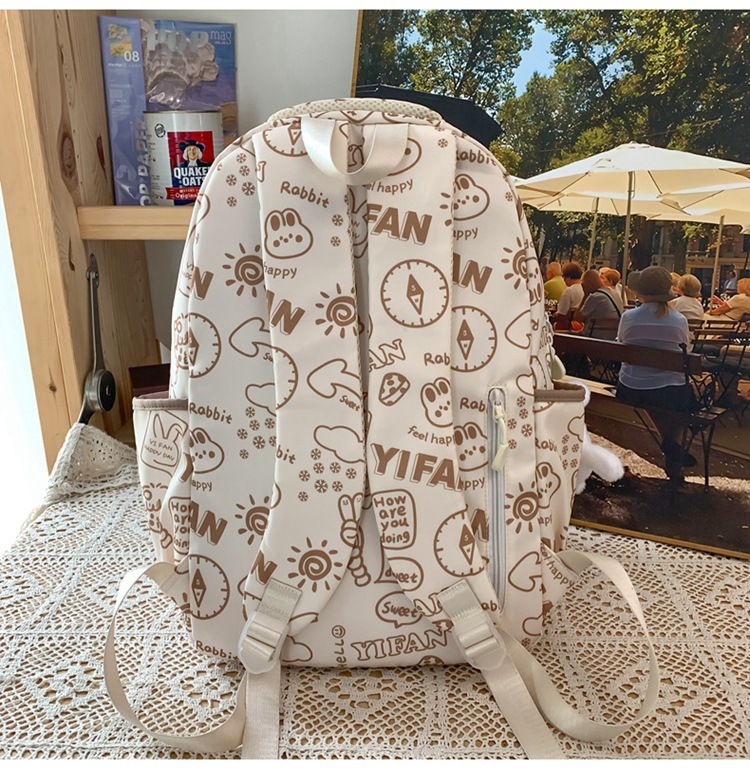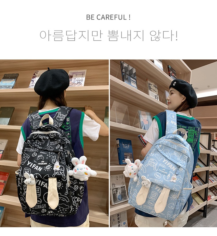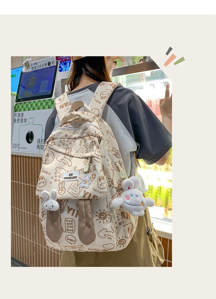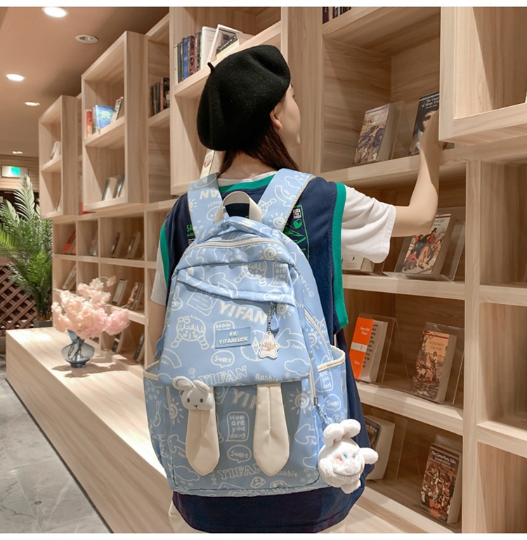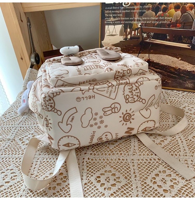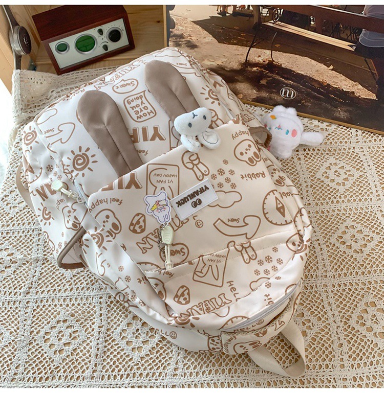 초등학생을위한 국경 간 책가방 여성의 새로운 대용량 낙서 토끼 귀 배낭 빈티지 스타일 귀여운 소녀 배낭스토어 가기