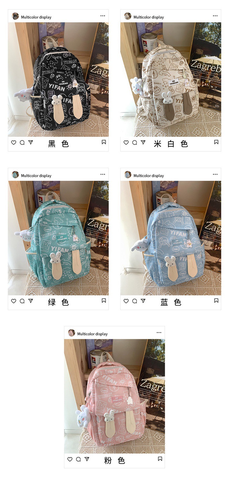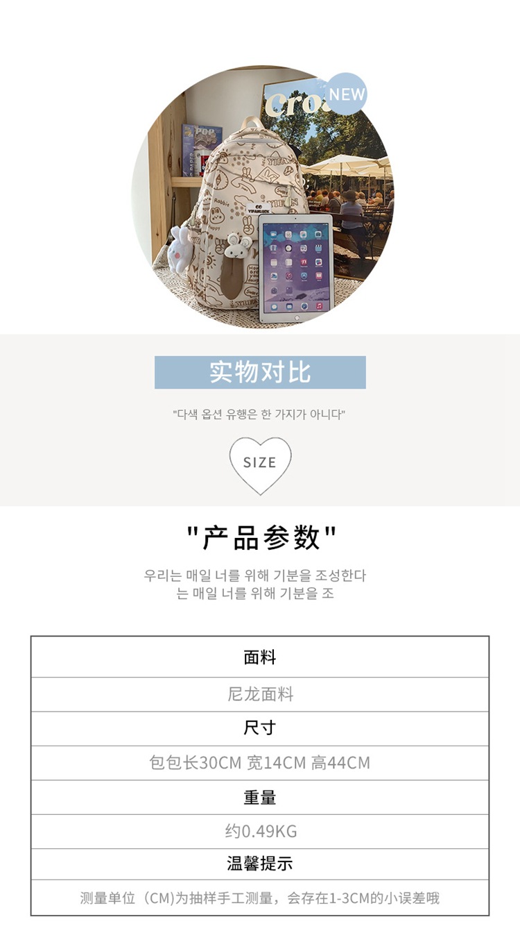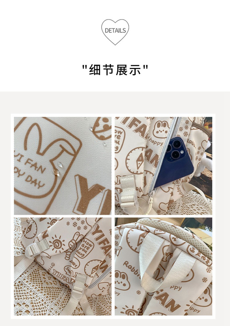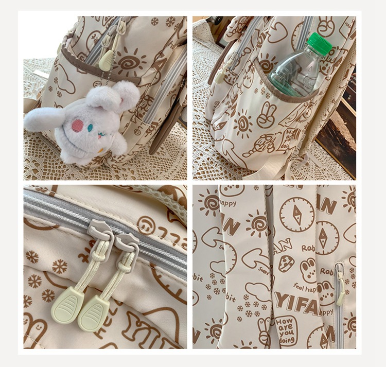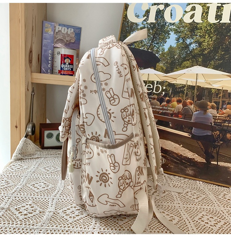 초등학생을위한 국경 간 책가방 여성의 새로운 대용량 낙서 토끼 귀 배낭 빈티지 스타일 귀여운 소녀 배낭스토어 가기
