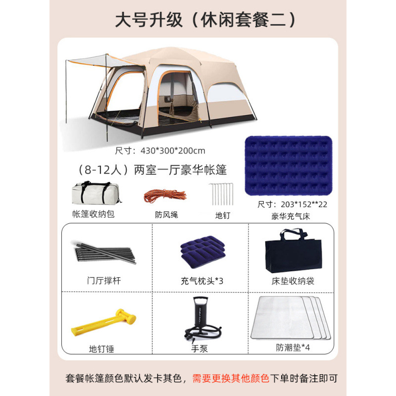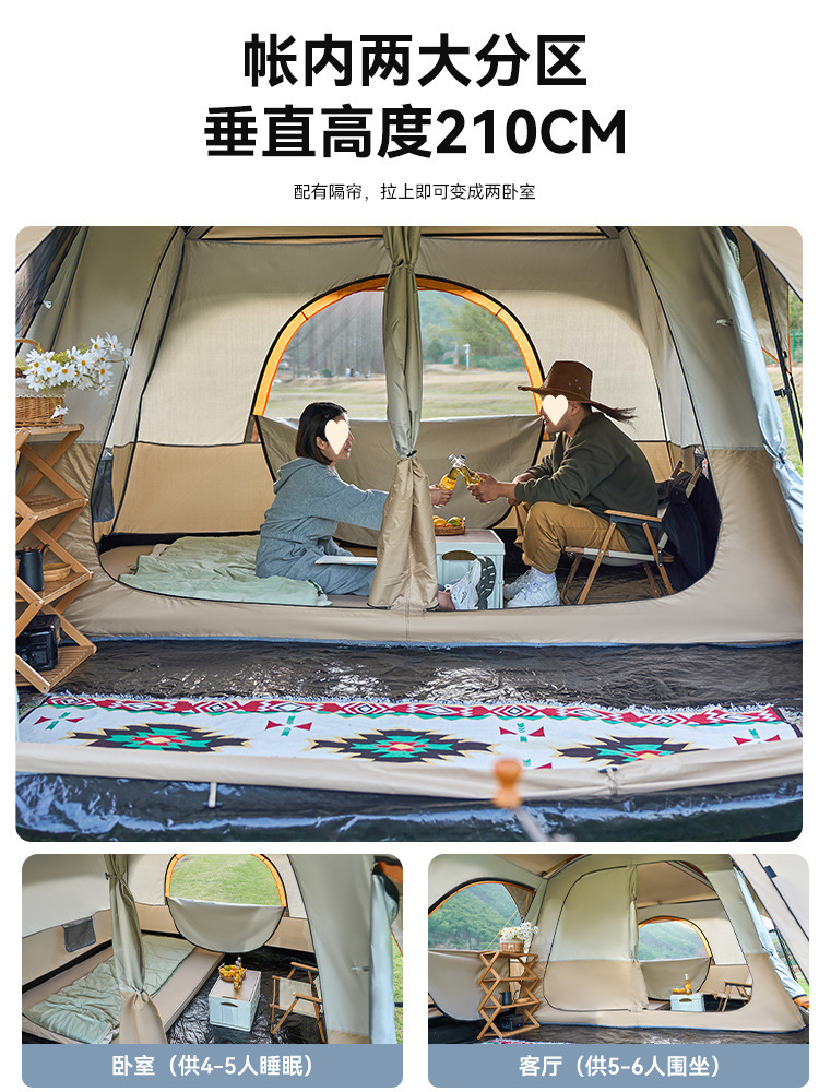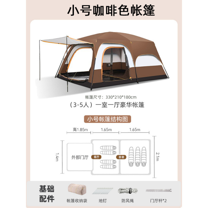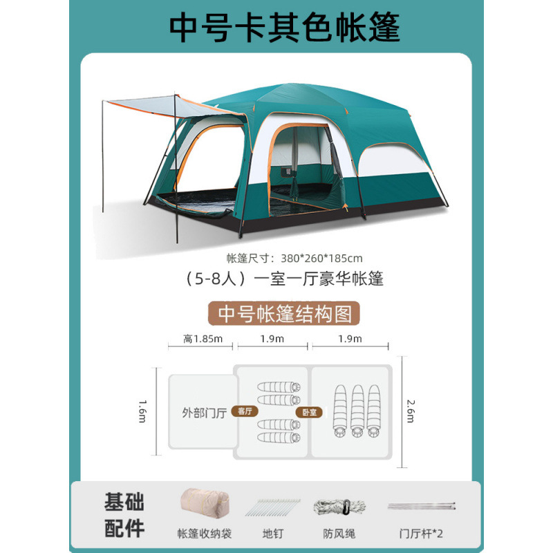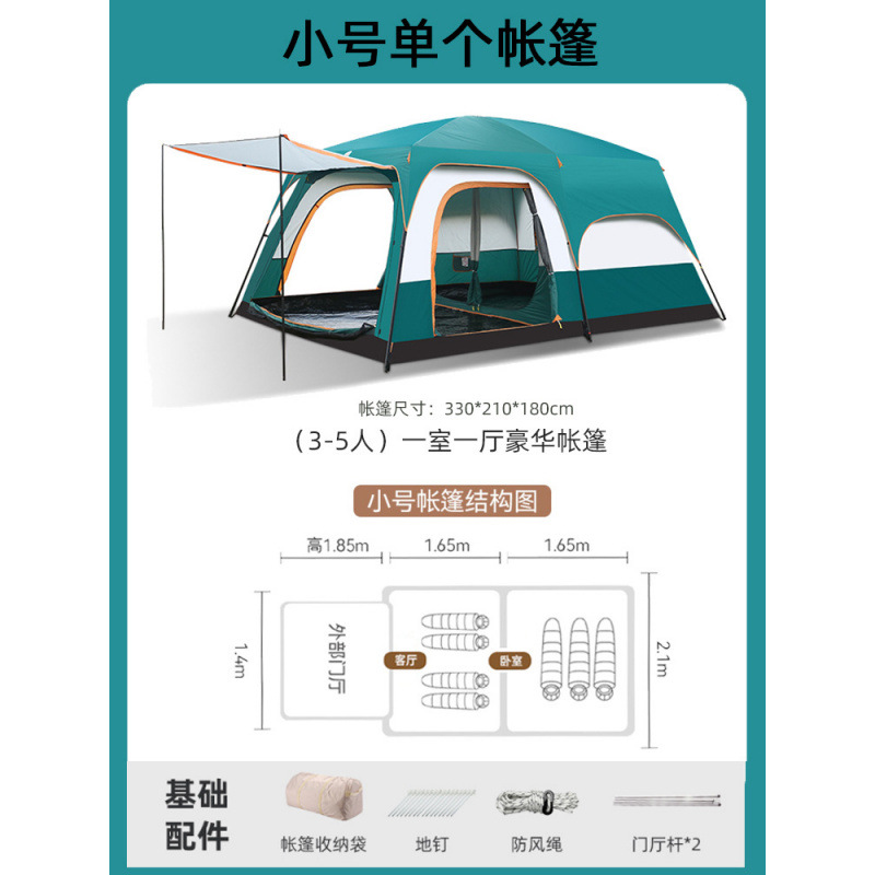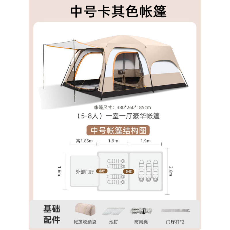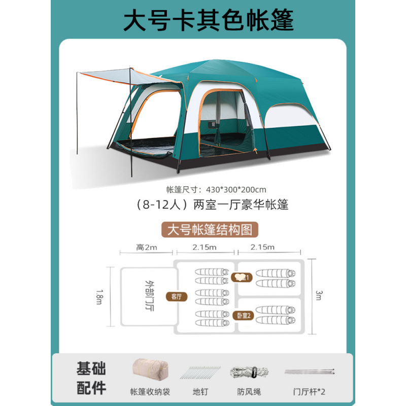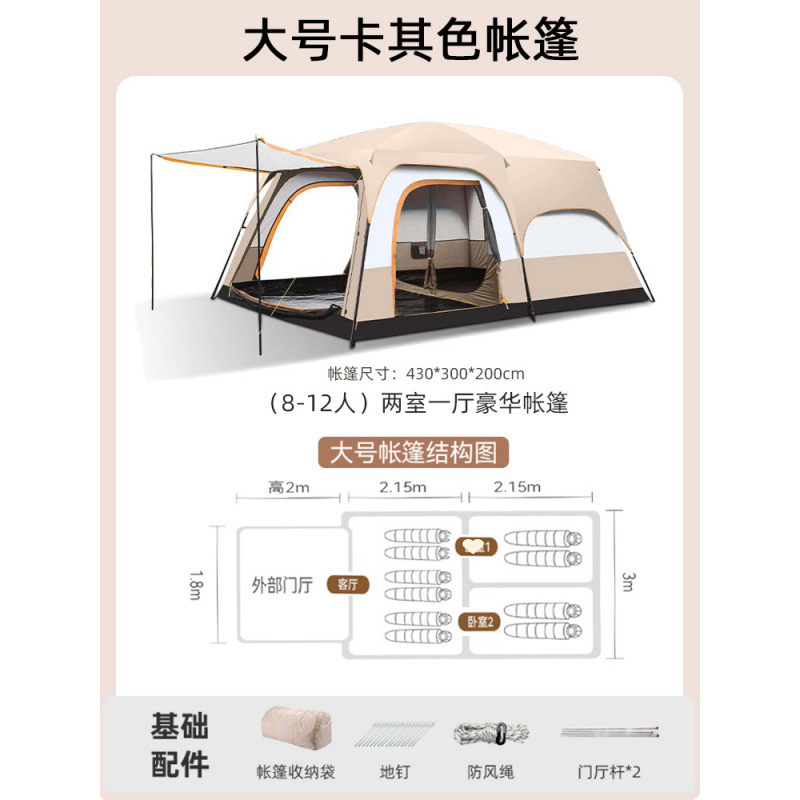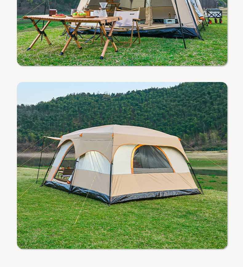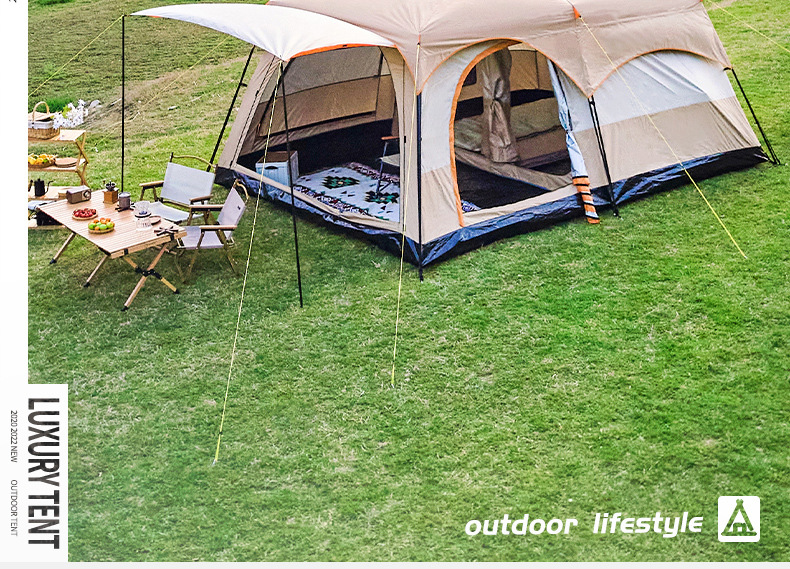 야외 캠핑용 텐트, 2개의 침실과 1개의 거실, 두꺼운 방수 휴대용 접이식 필드 장비 캠핑 창고스토어 가기