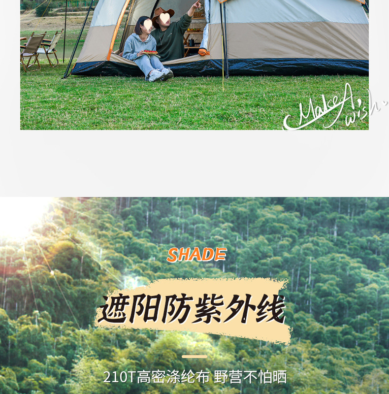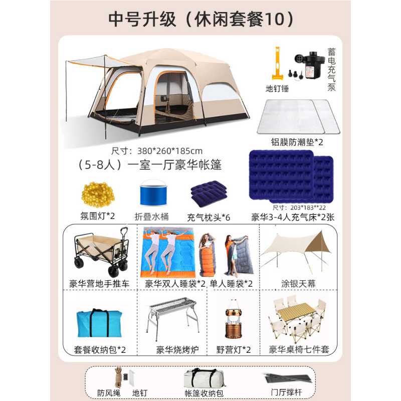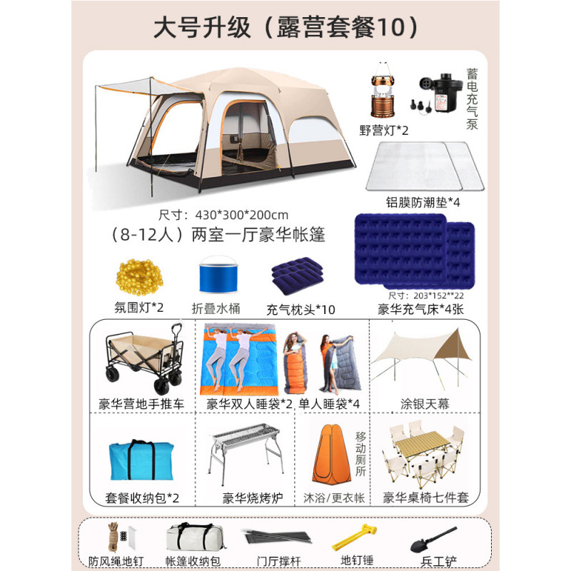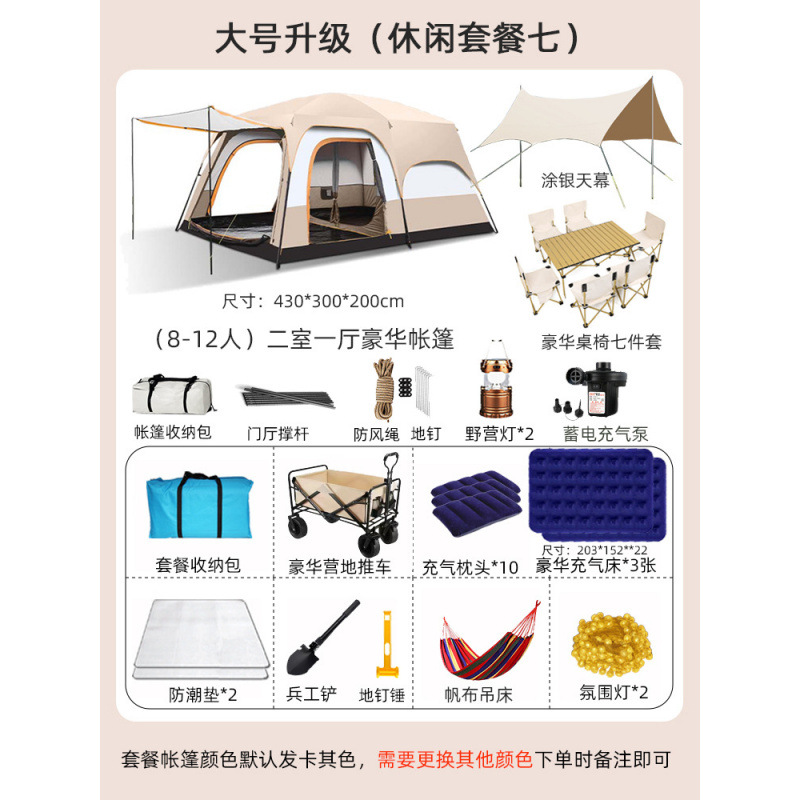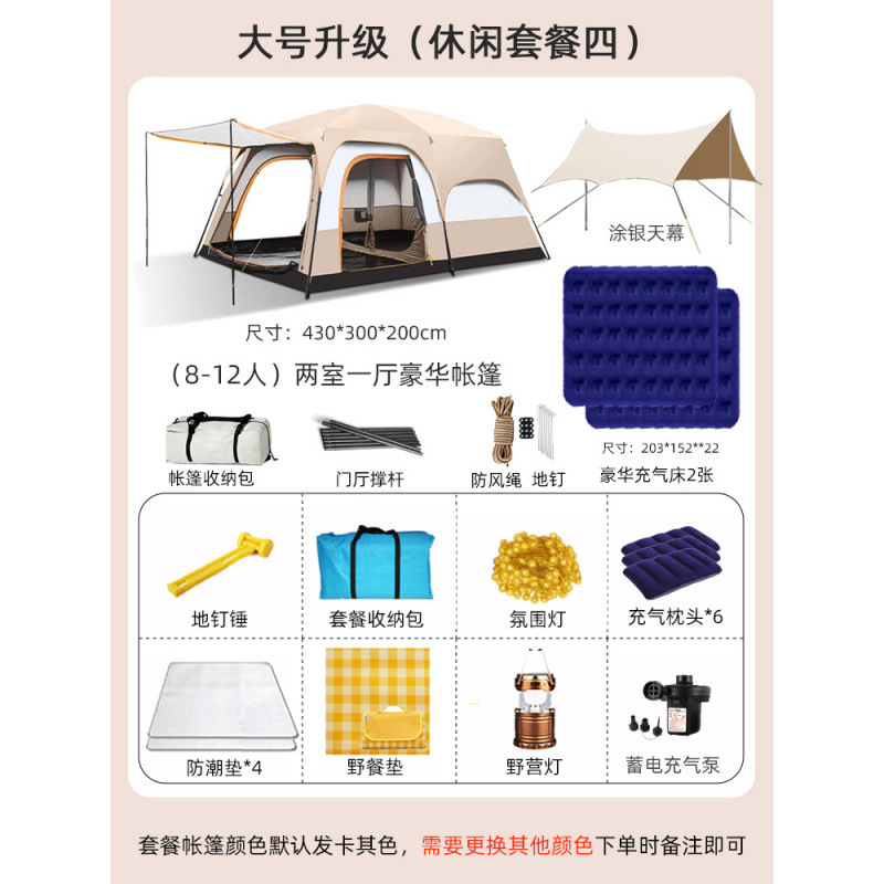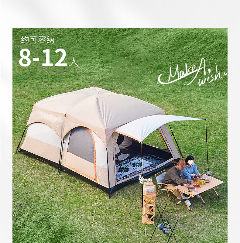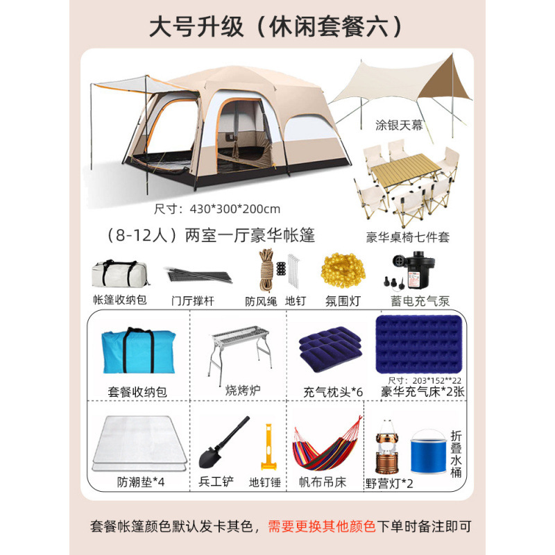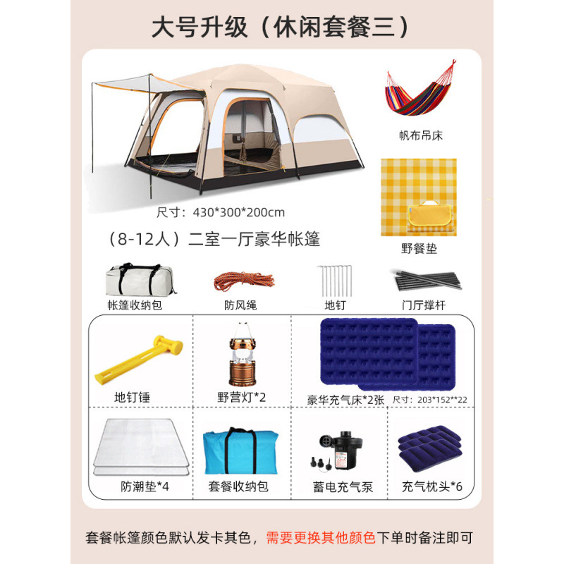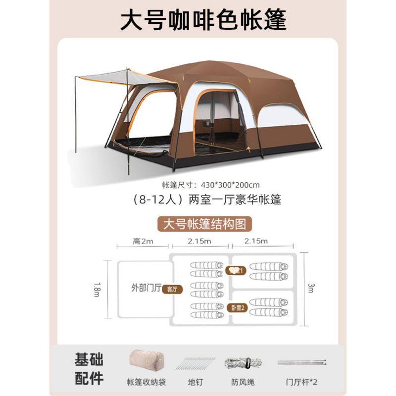 야외 캠핑용 텐트, 2개의 침실과 1개의 거실, 두꺼운 방수 휴대용 접이식 필드 장비 캠핑 창고스토어 가기