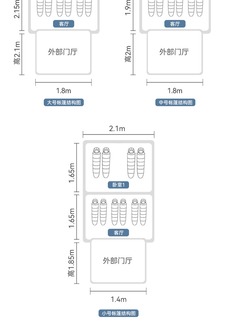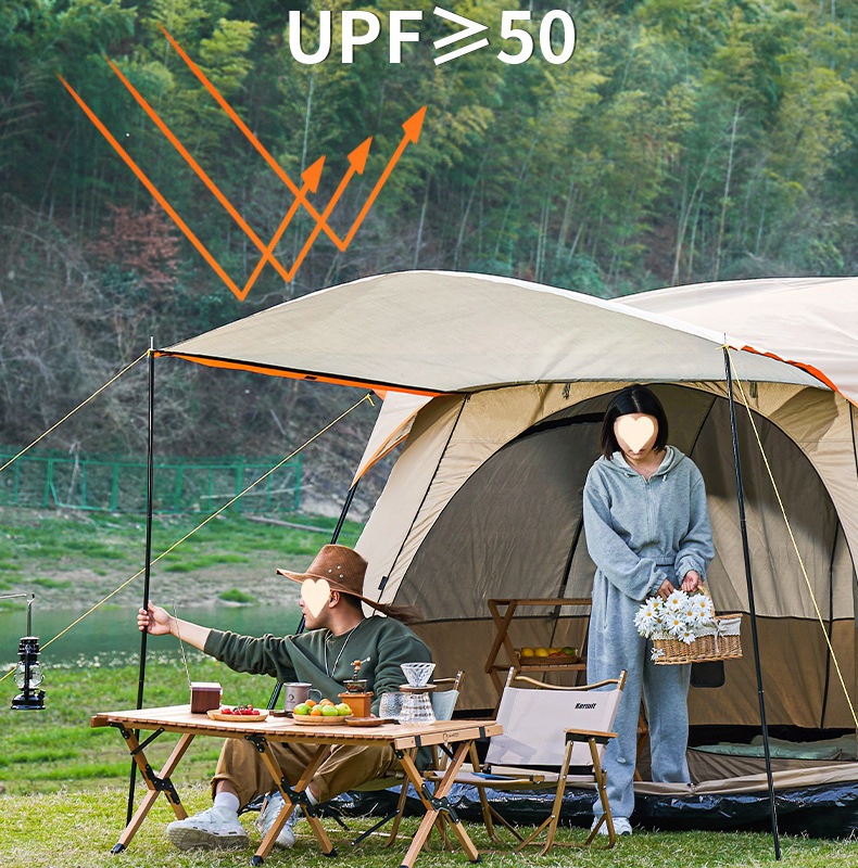 야외 캠핑용 텐트, 2개의 침실과 1개의 거실, 두꺼운 방수 휴대용 접이식 필드 장비 캠핑 창고