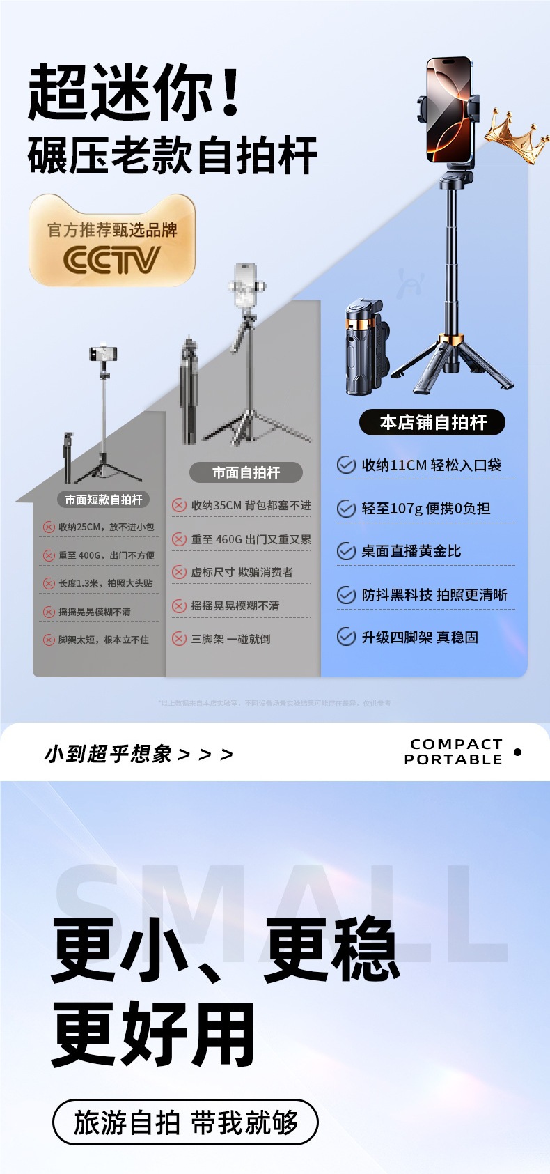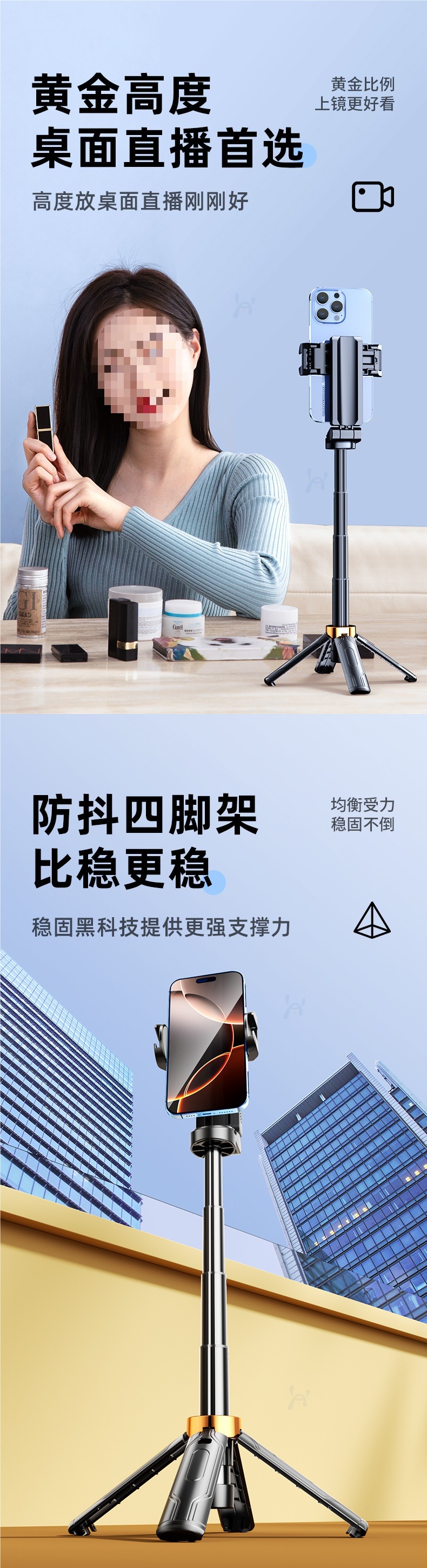 미니 셀카봉, 블루투스 원격 제어, 일체형 플로어 스탠딩 삼각대, 휴대용 셀카 보조 조명, 다기능 촬영 보조 장치스토어 가기