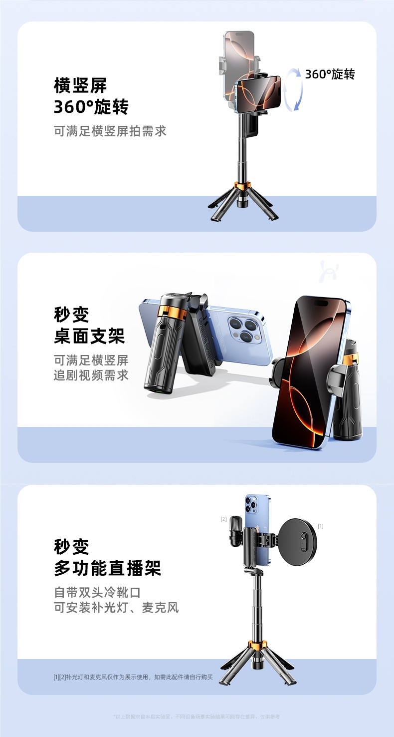 미니 셀카봉, 블루투스 원격 제어, 일체형 플로어 스탠딩 삼각대, 휴대용 셀카 보조 조명, 다기능 촬영 보조 장치