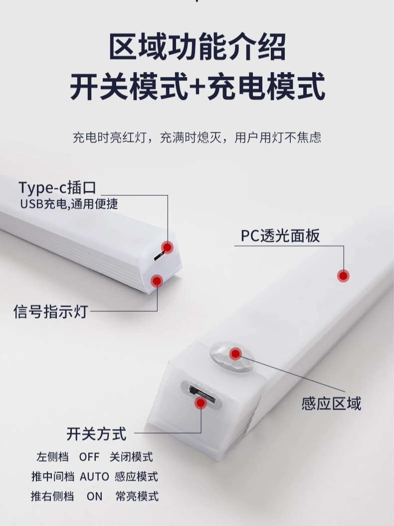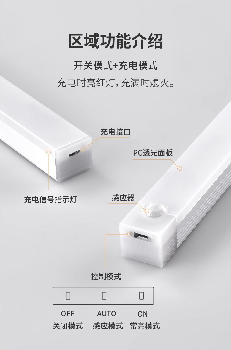 Led 인체 유도 스마트 무선 자기 야간 조명 긴 스트립 충전식 주방 옷장 캐비닛 라이트 스트립 라이트 스트립스토어 가기