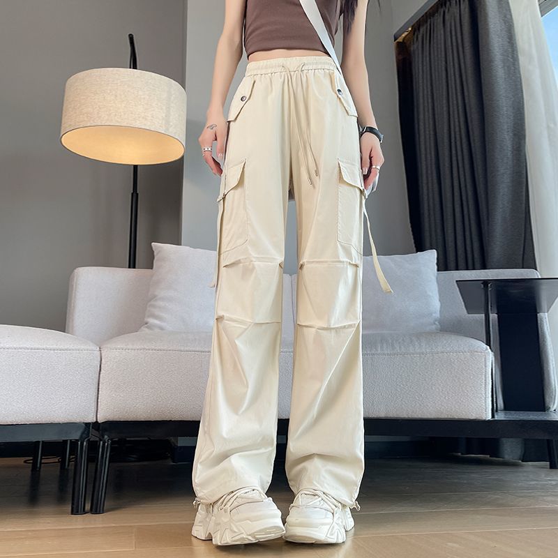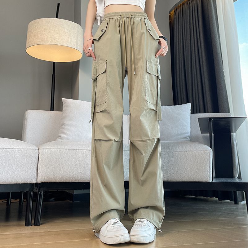 여름용 여성용 블랙 속건성 작업복 얇고 슬림한 스트레이트 와이드 레그 멀티 포켓 등산 루즈한 틈새 바지스토어 가기