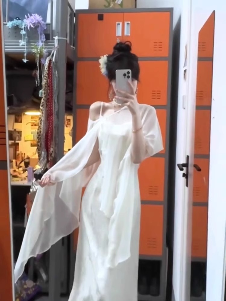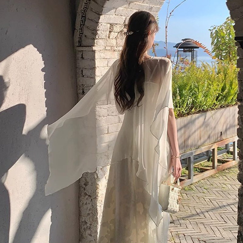 공식 사진, 실제 가격, 투웨어 쉬폰 자외선 차단 셔츠, 숄, 부드러운 기질의 블라우스, 여성 여름 가디건, 살짝 시스루한 요정 탑스토어 가기