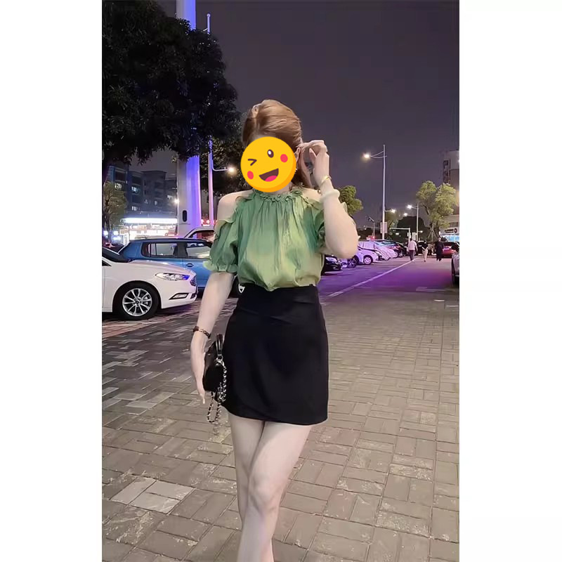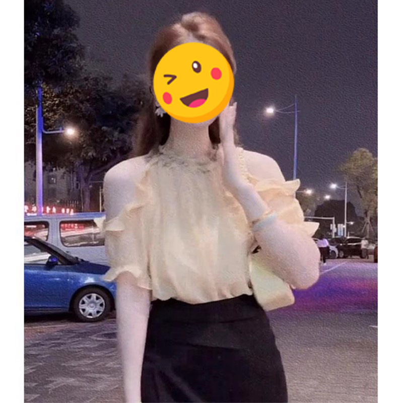 싱글 피스/프렌치 스타일 스위트 홀터넥 오프 숄더 쉬폰 셔츠 여성 2025 여름 짧은 소매 스커트