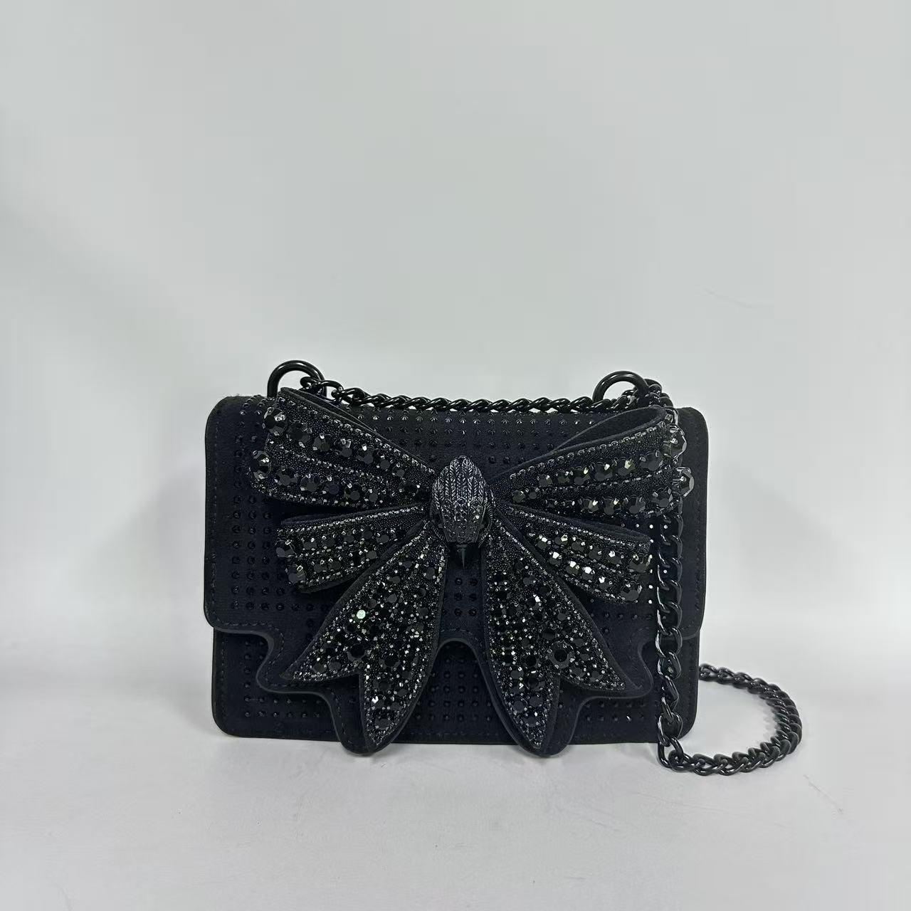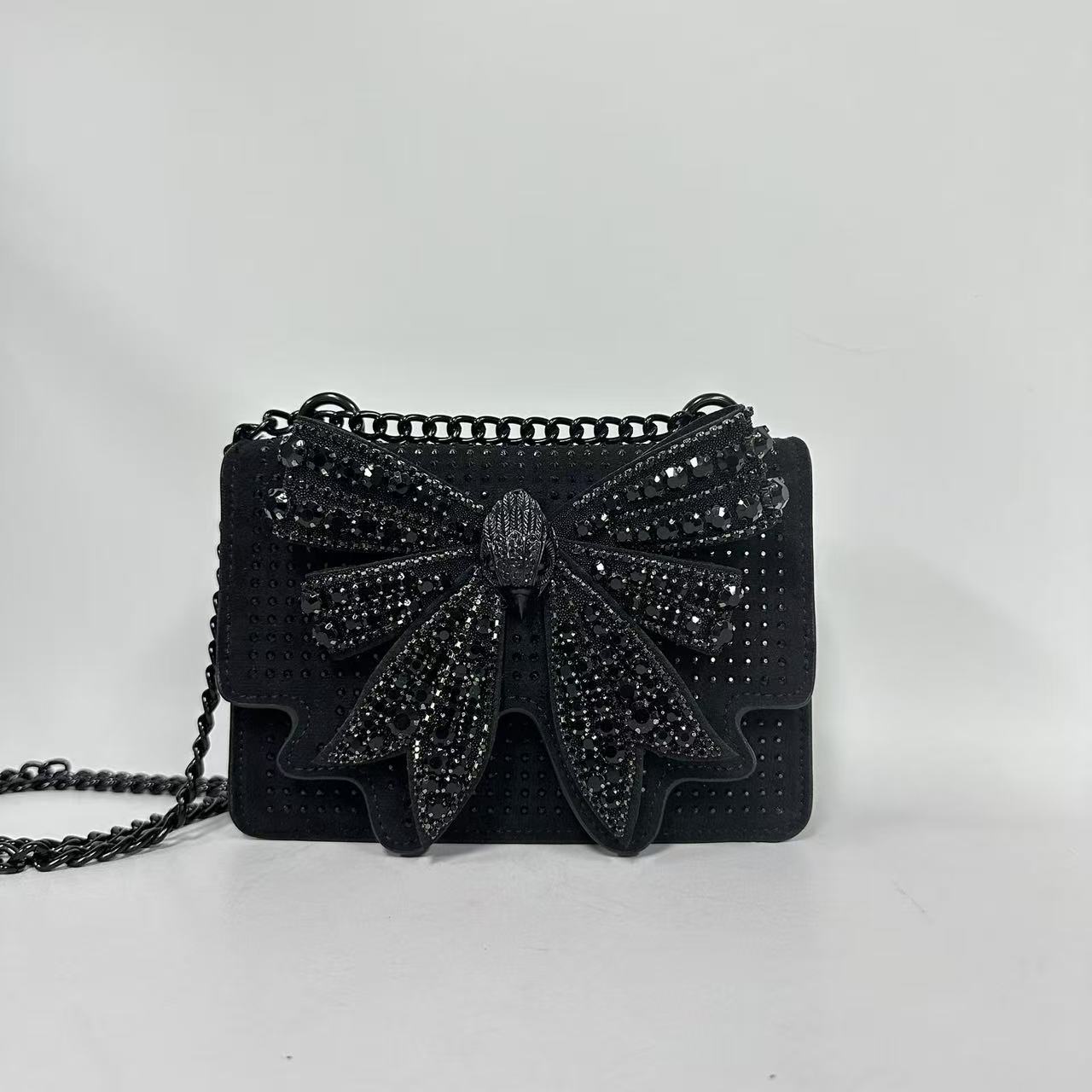독수리 머리 보우 가방 연회 패션 여성 가방 반짝 이는 달콤한 어깨 메신저 체인 가방 다이아몬드 나비 라인 석 가방