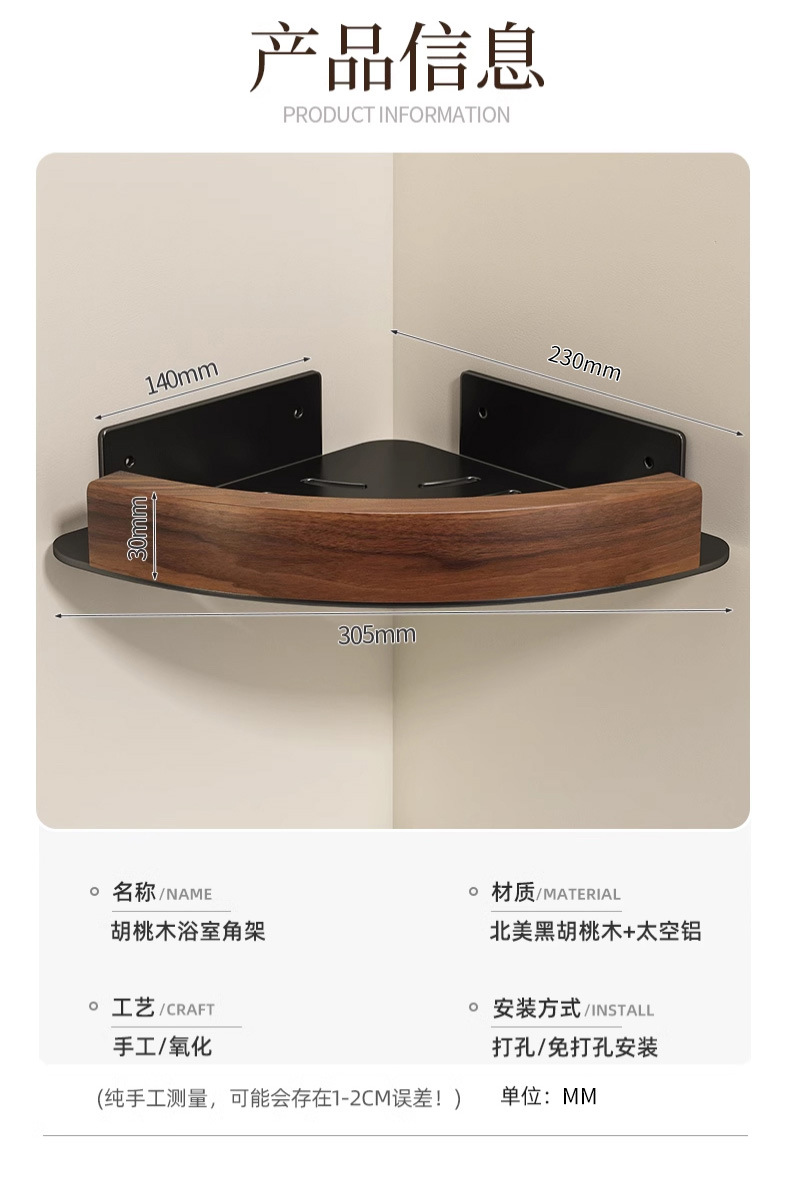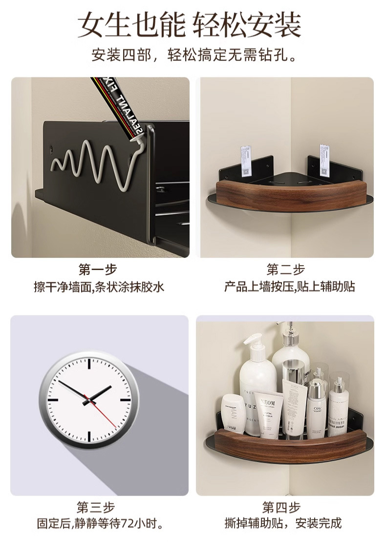 욕실 욕실 벽 삼각형 수납 선반 펀치 프리 호두 화장실 세면대 수납 선반스토어 가기