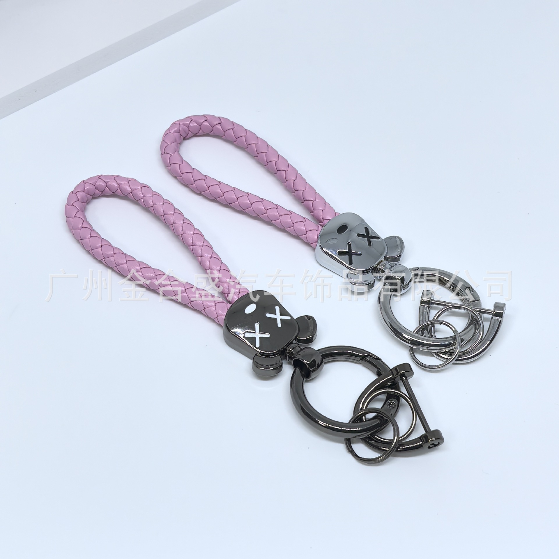 인터넷 연예인 Douyin 인기 손으로 짠 곰 로프 자동차 키 체인 커플 열쇠 고리 액세서리 가방 펜던트