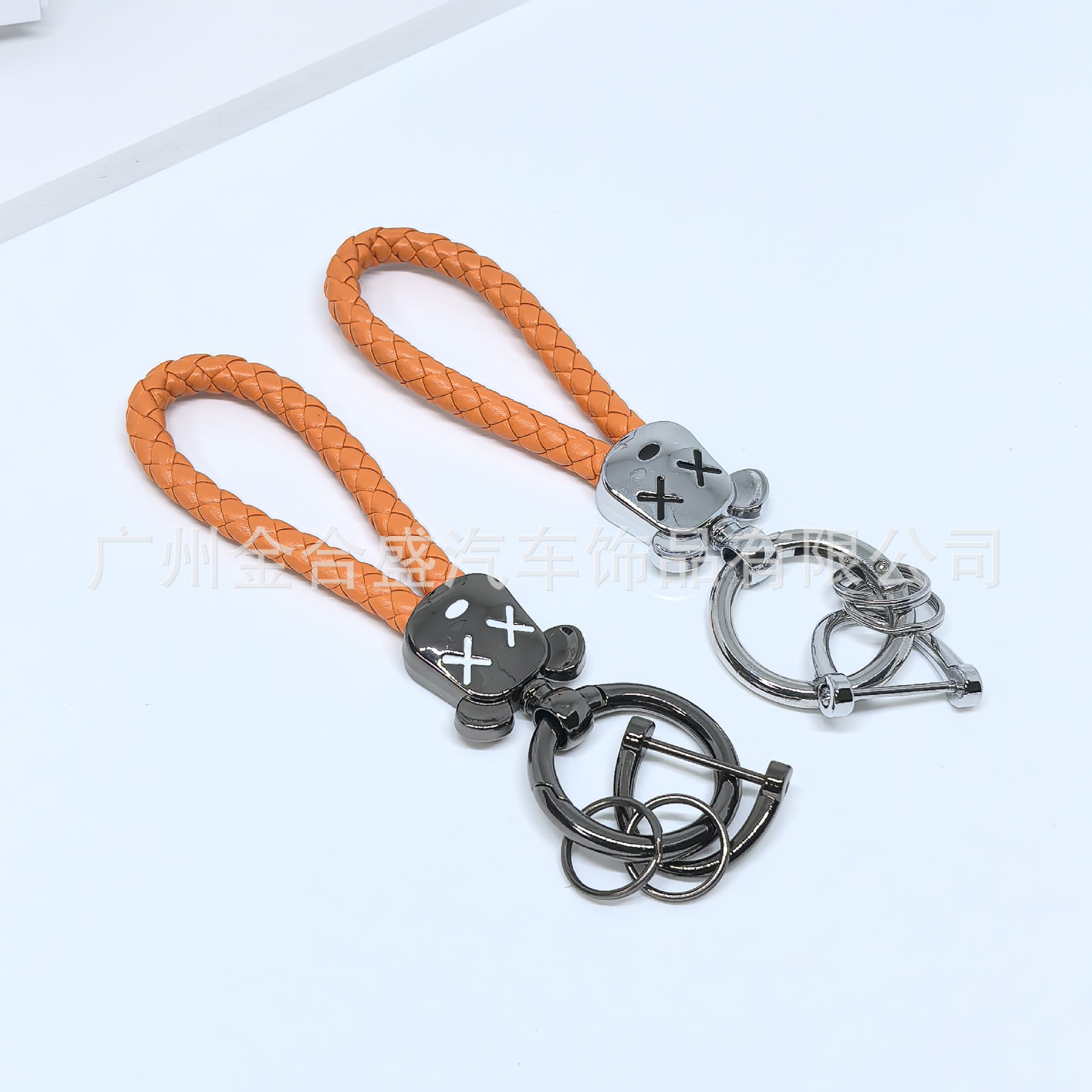 인터넷 연예인 Douyin 인기 손으로 짠 곰 로프 자동차 키 체인 커플 열쇠 고리 액세서리 가방 펜던트스토어 가기