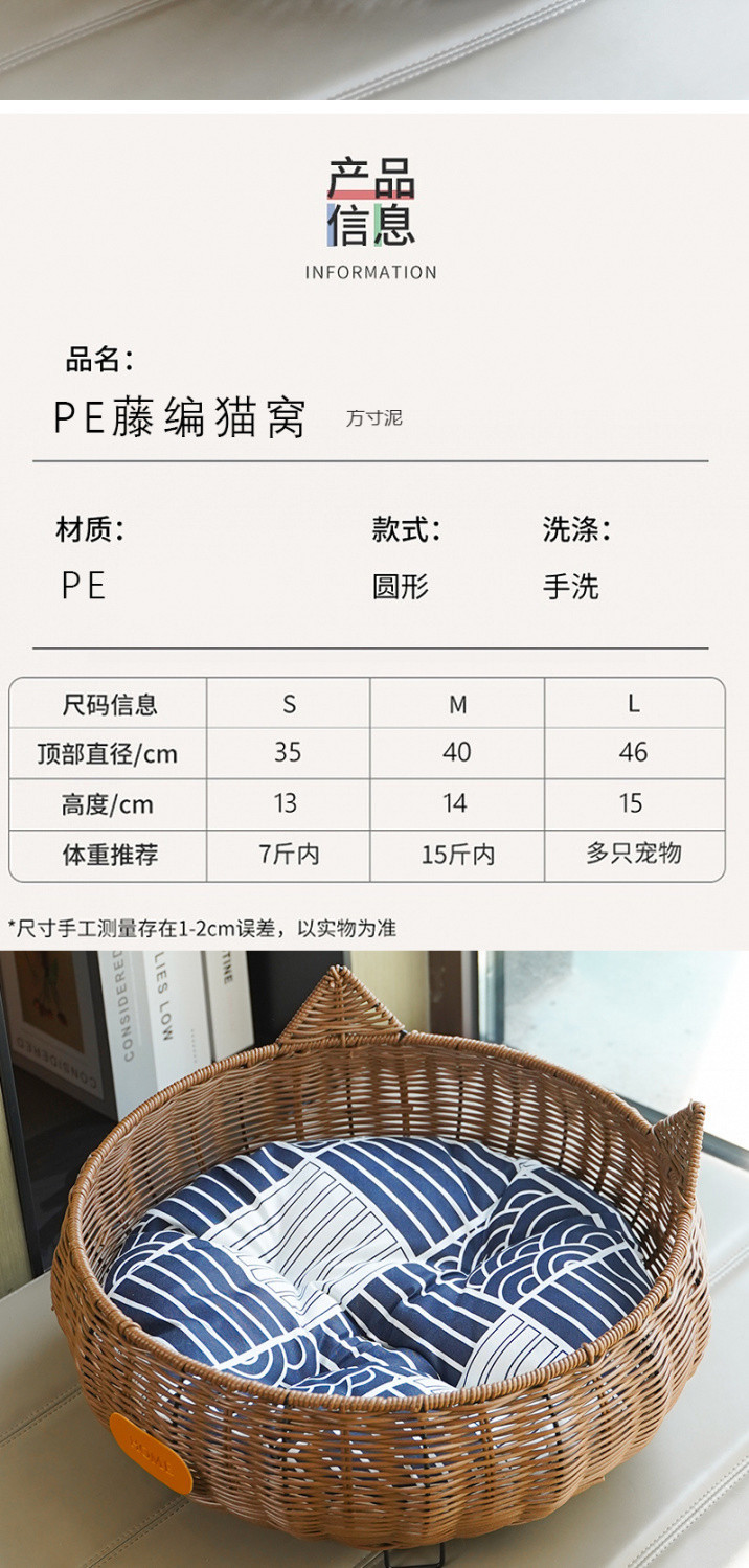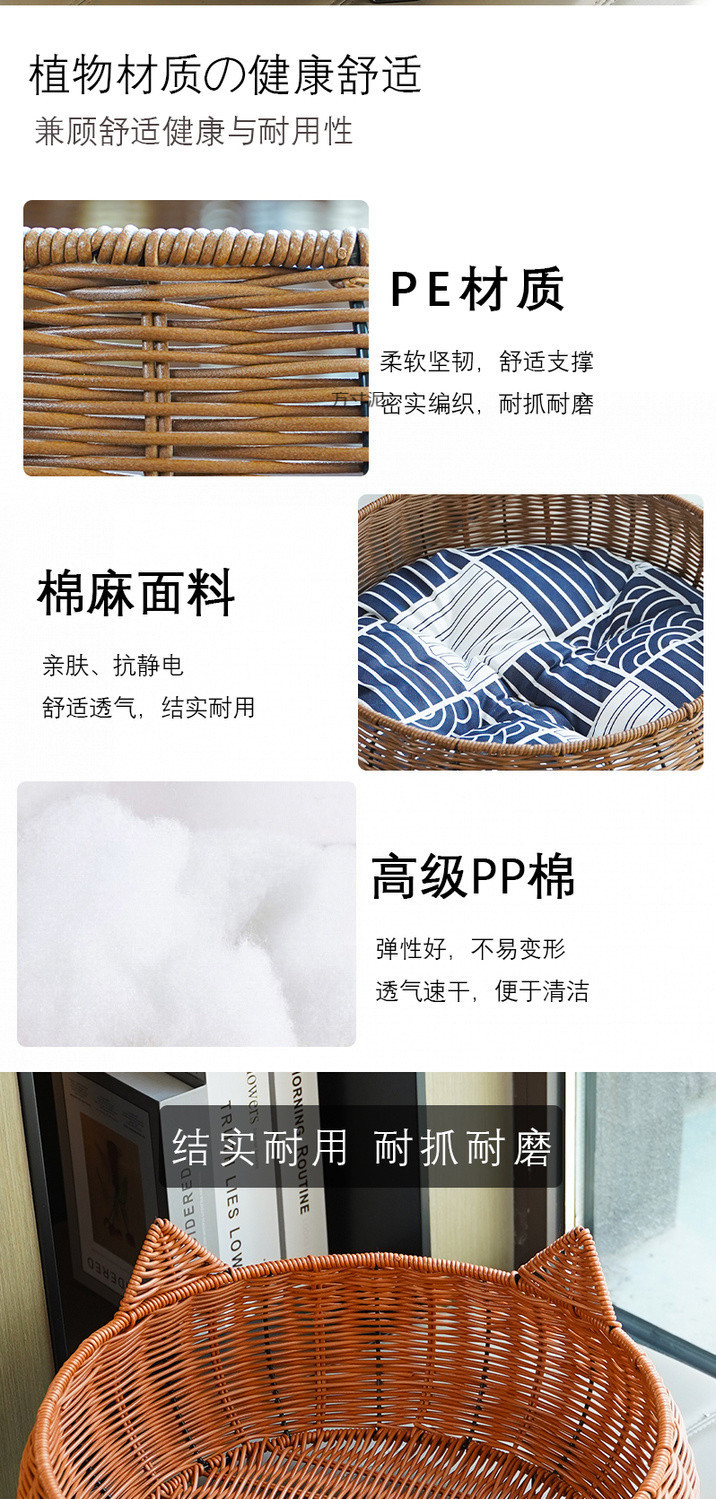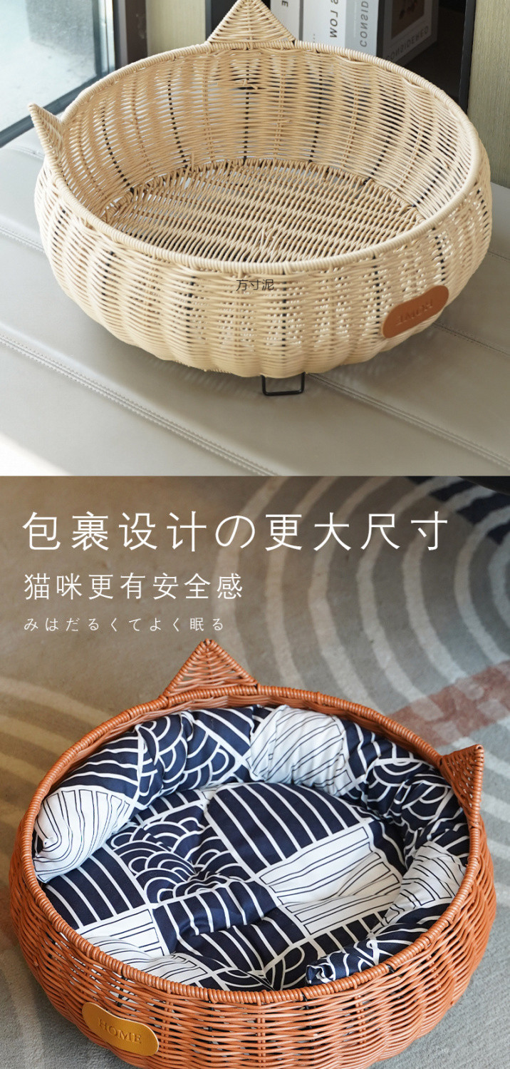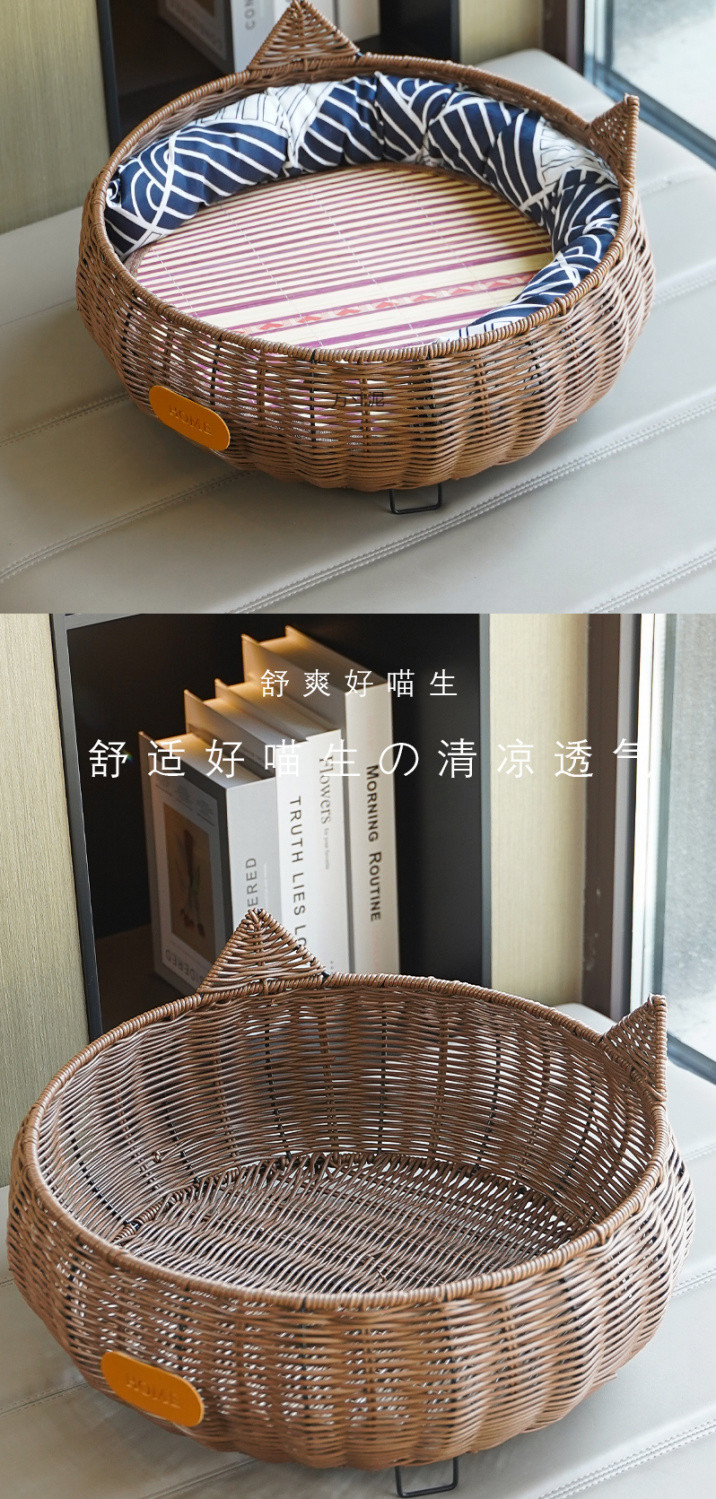 사계절 고양이둥지, 여름용 고양이둥지, 세탁 가능한 고양이 등나무둥지, 소형개둥지, 애완동물둥지