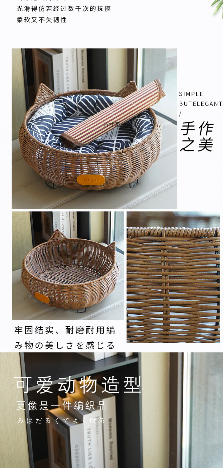 사계절 고양이둥지, 여름용 고양이둥지, 세탁 가능한 고양이 등나무둥지, 소형개둥지, 애완동물둥지스토어 가기