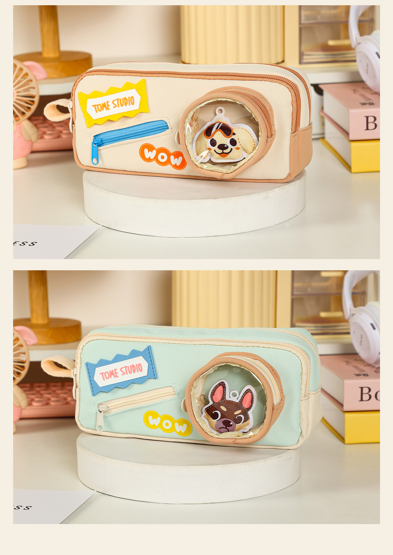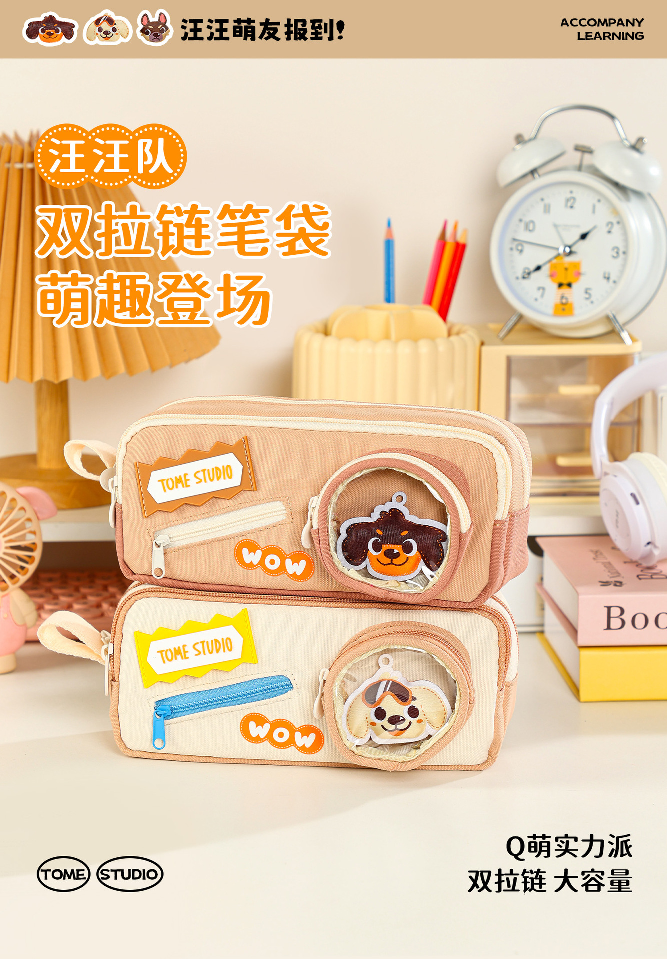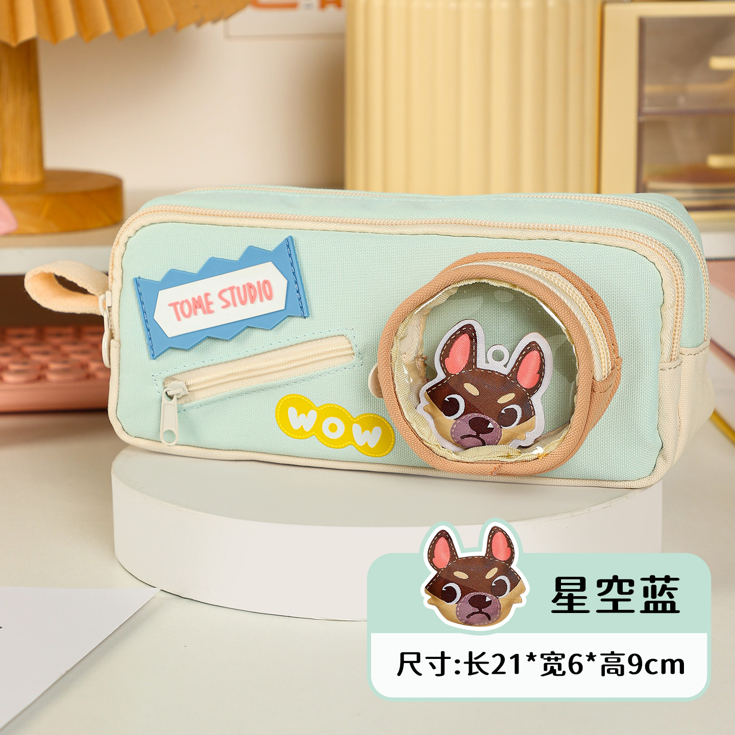 TOME 귀여운 개 개 시리즈 만화 DIY 펜 상자 대용량 더블 레이어 펜 가방 초등 학생 문구 가방