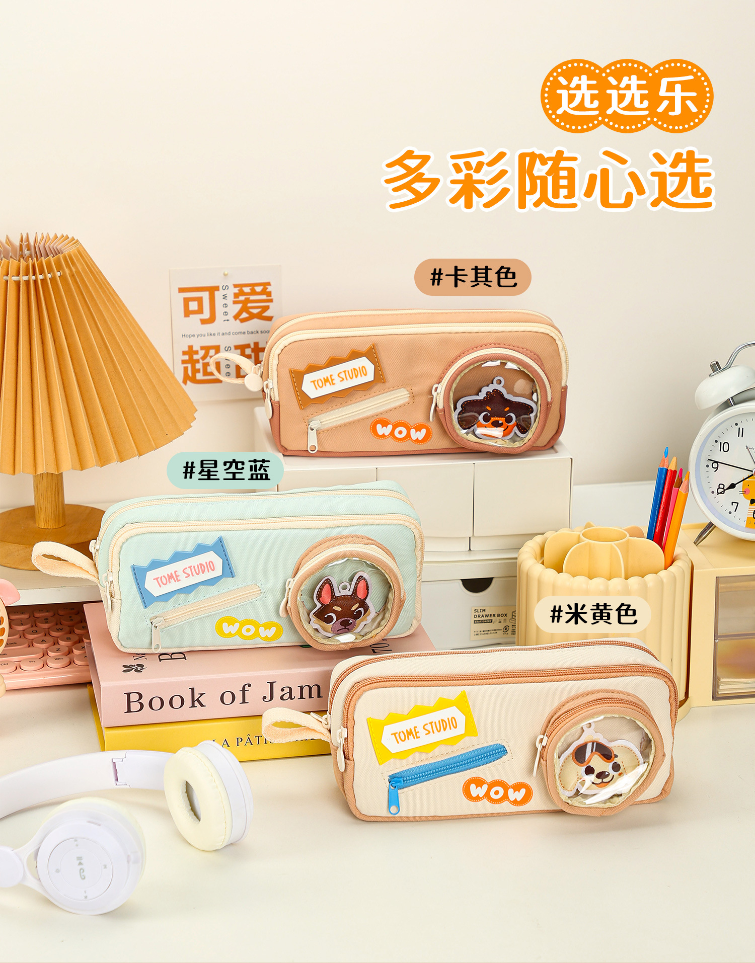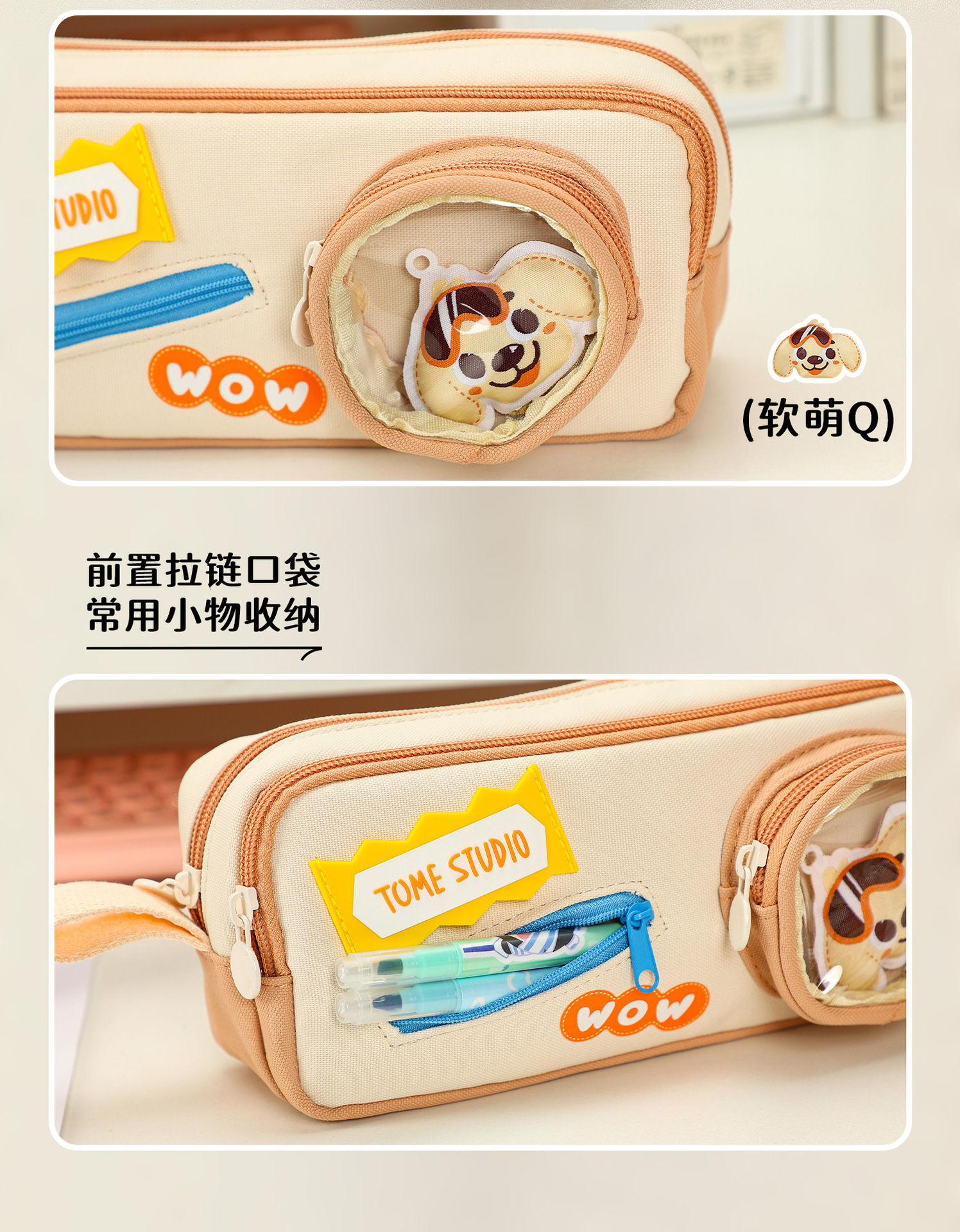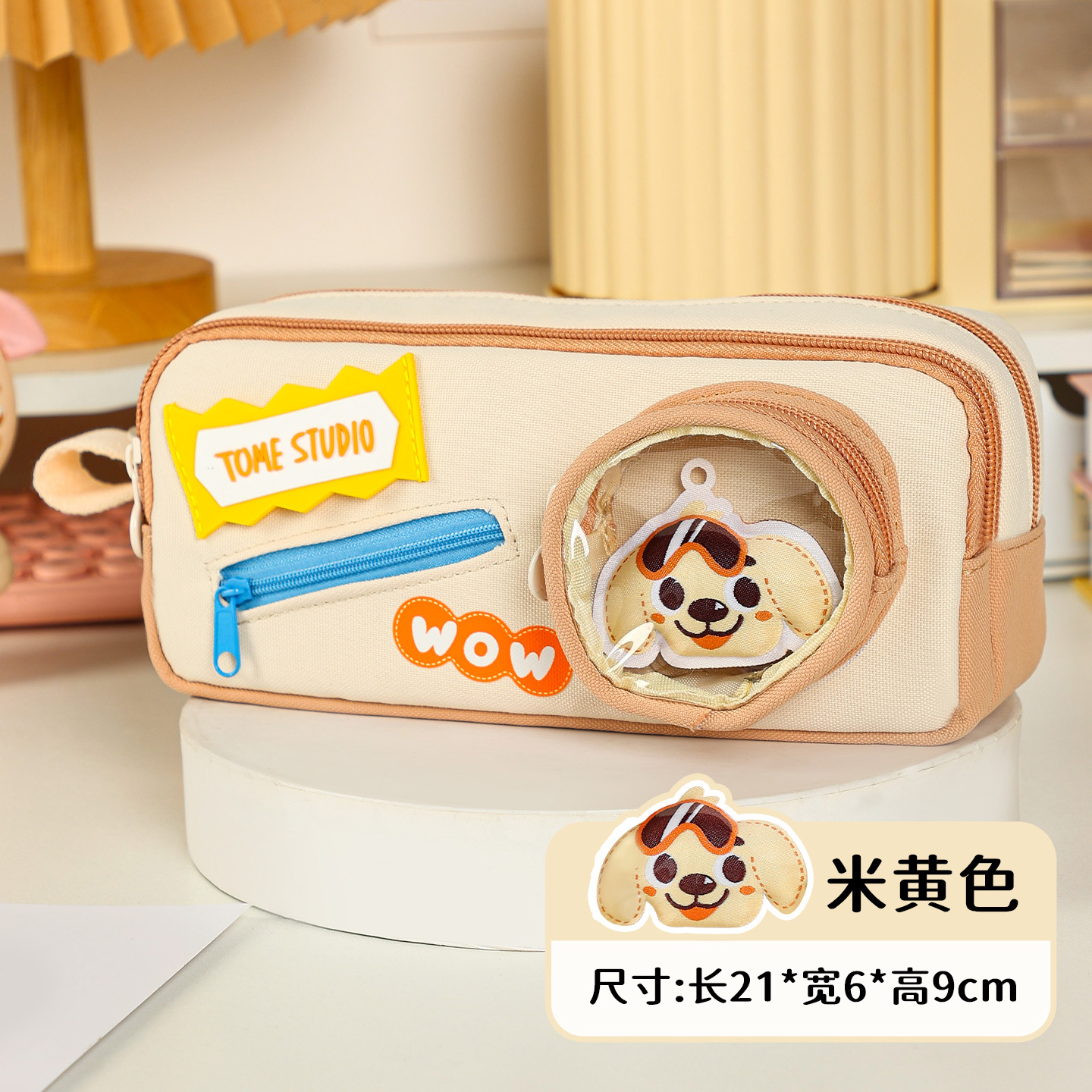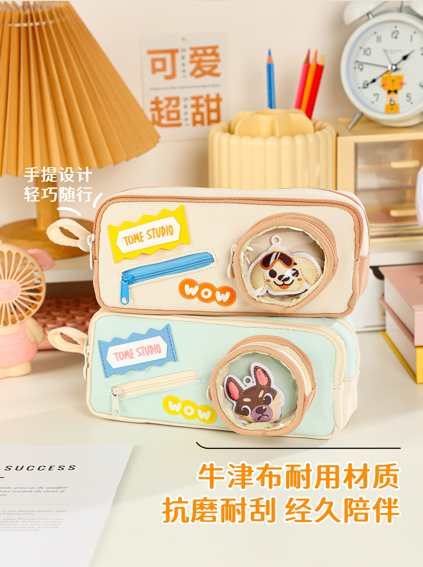 TOME 귀여운 개 개 시리즈 만화 DIY 펜 상자 대용량 더블 레이어 펜 가방 초등 학생 문구 가방