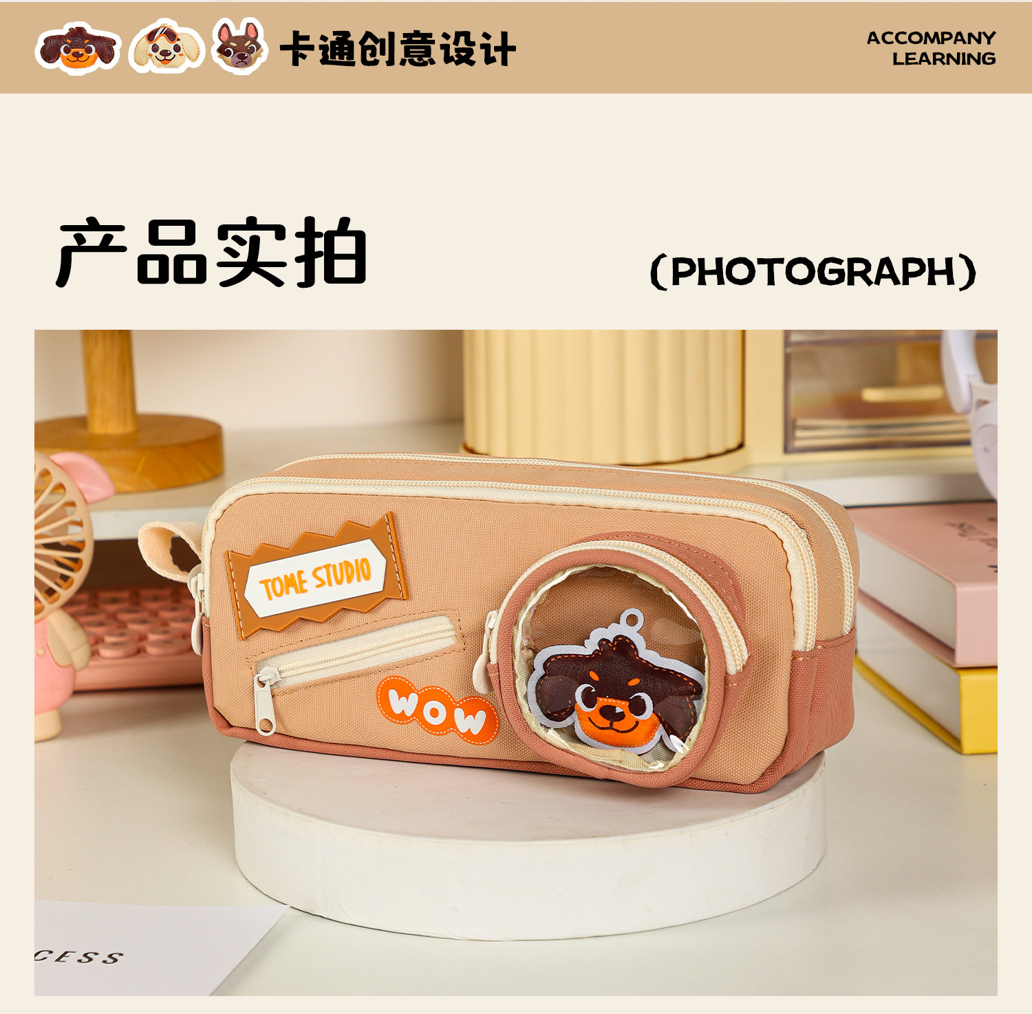 TOME 귀여운 개 개 시리즈 만화 DIY 펜 상자 대용량 더블 레이어 펜 가방 초등 학생 문구 가방스토어 가기