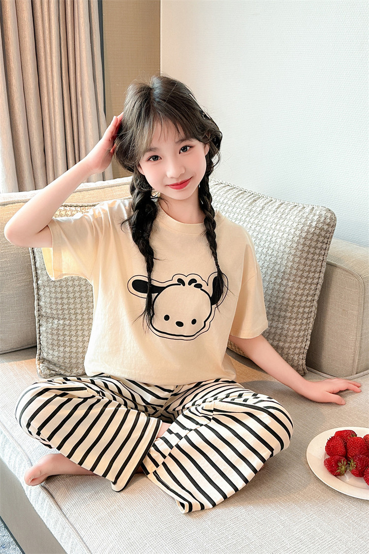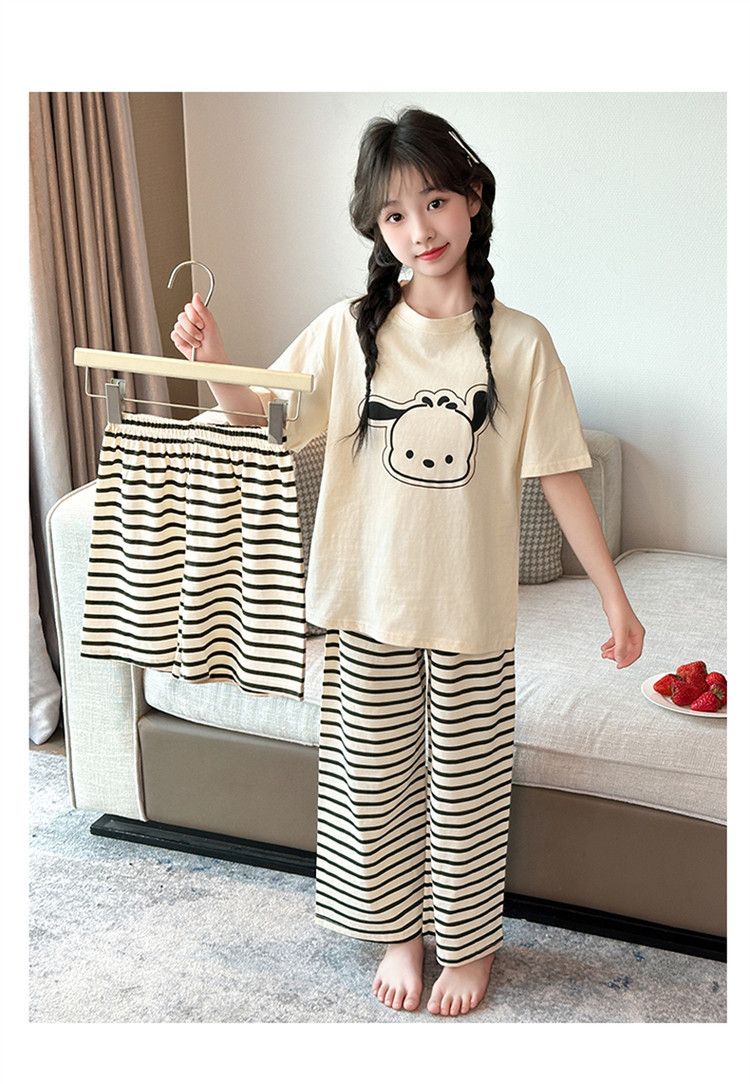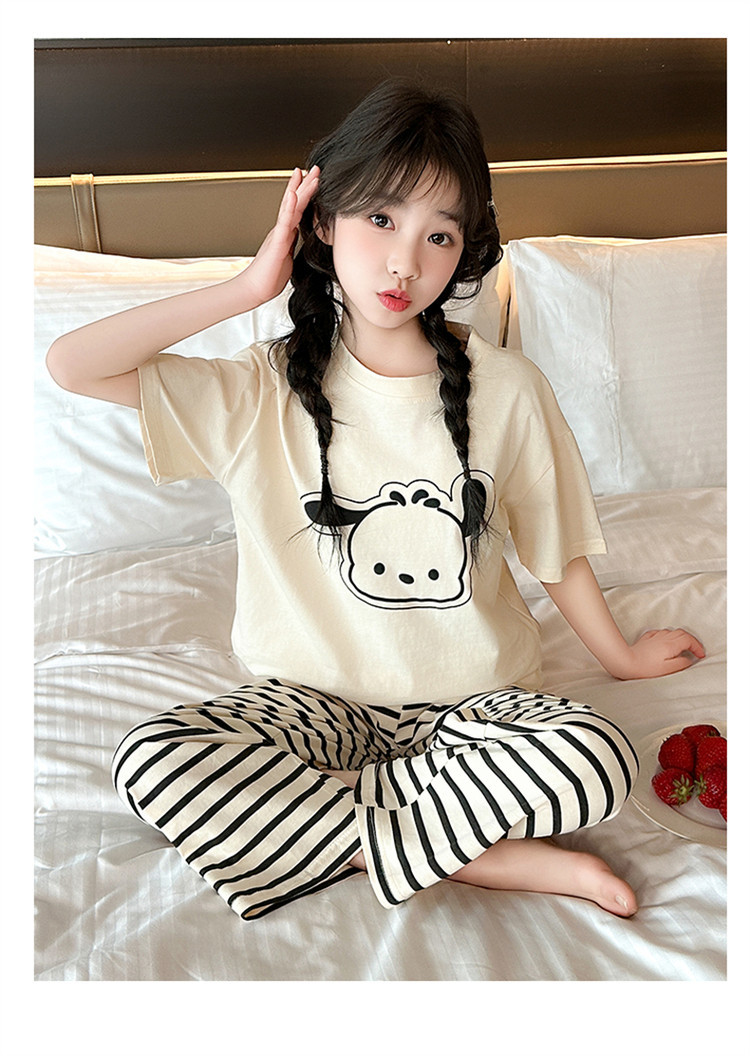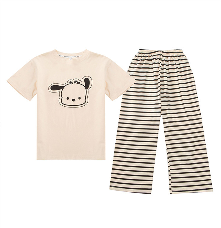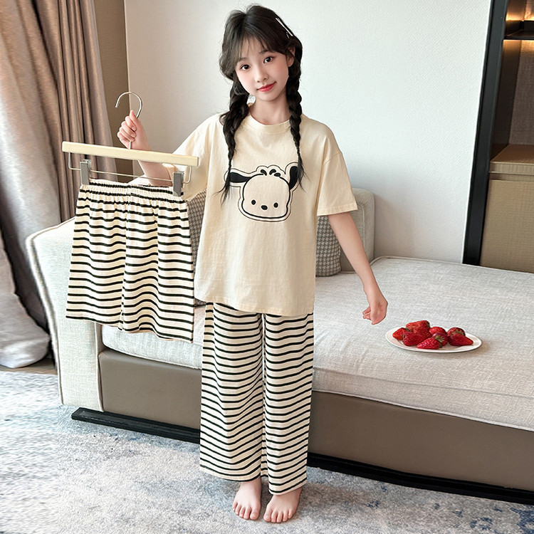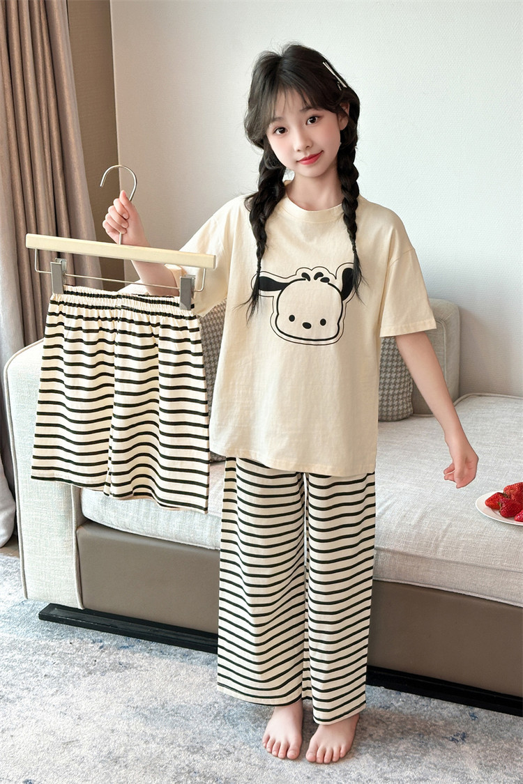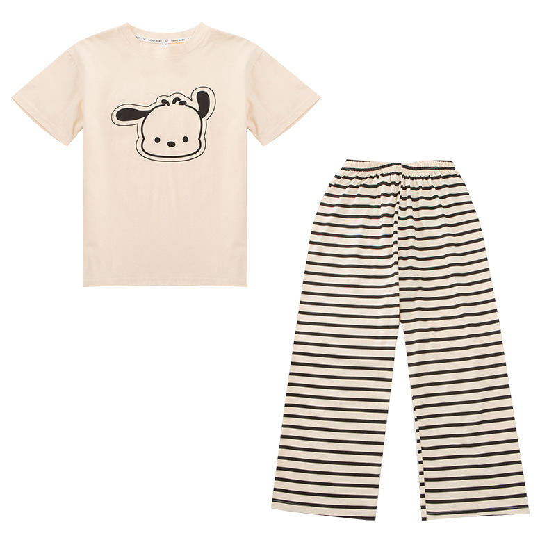 여자 만화 가정 의류 세트 여름 여자 캐주얼 반팔 바지 순수 코튼 잠옷 귀여운 겉옷 3 피스 세트
