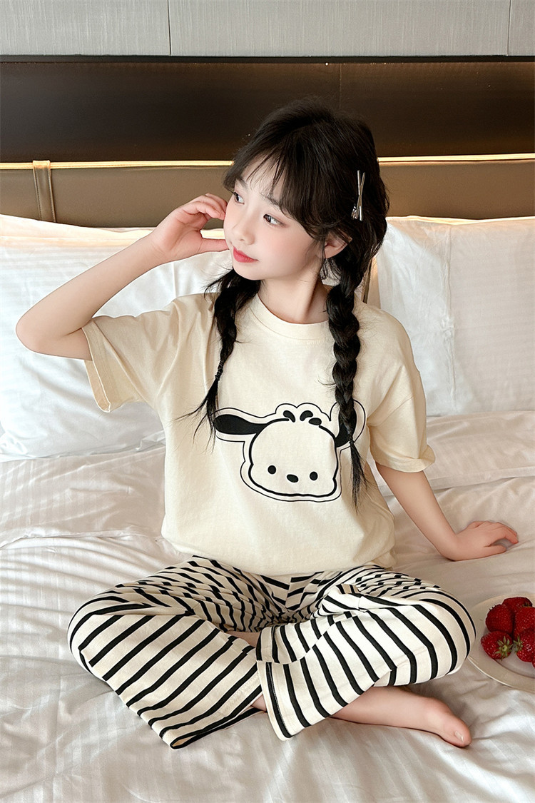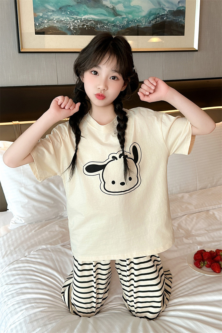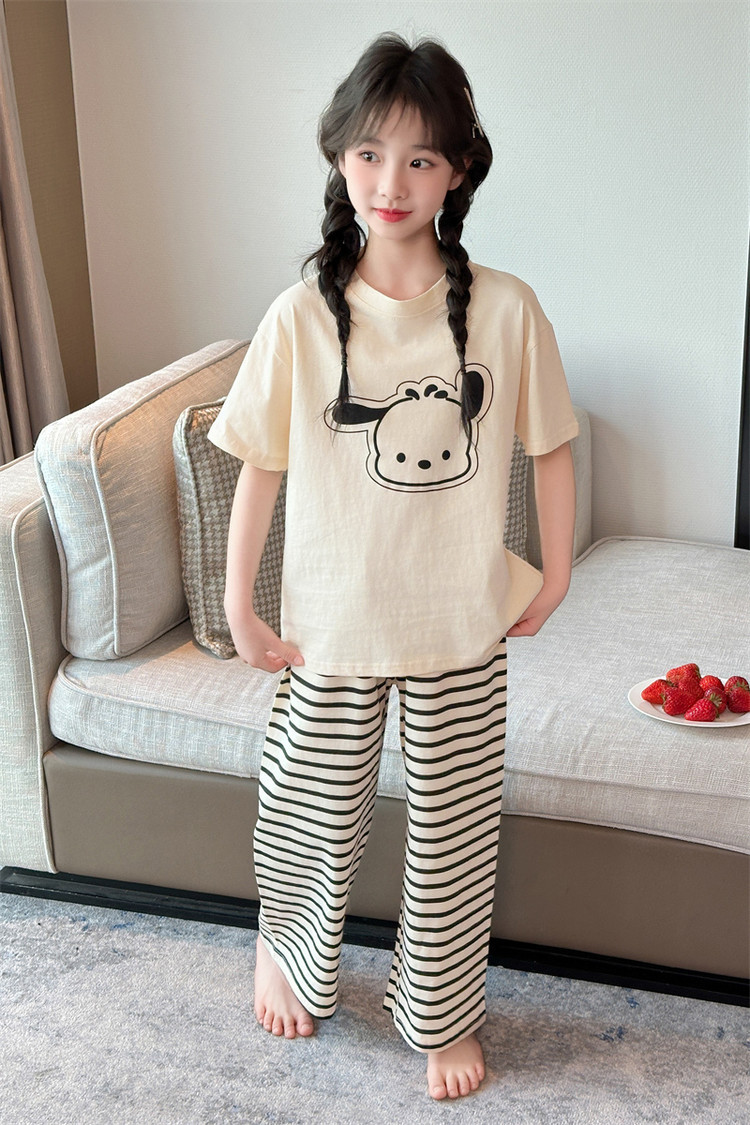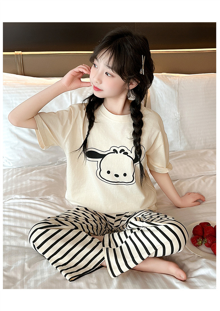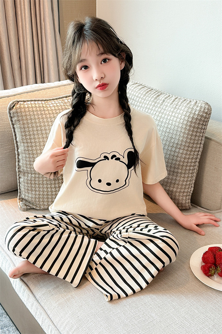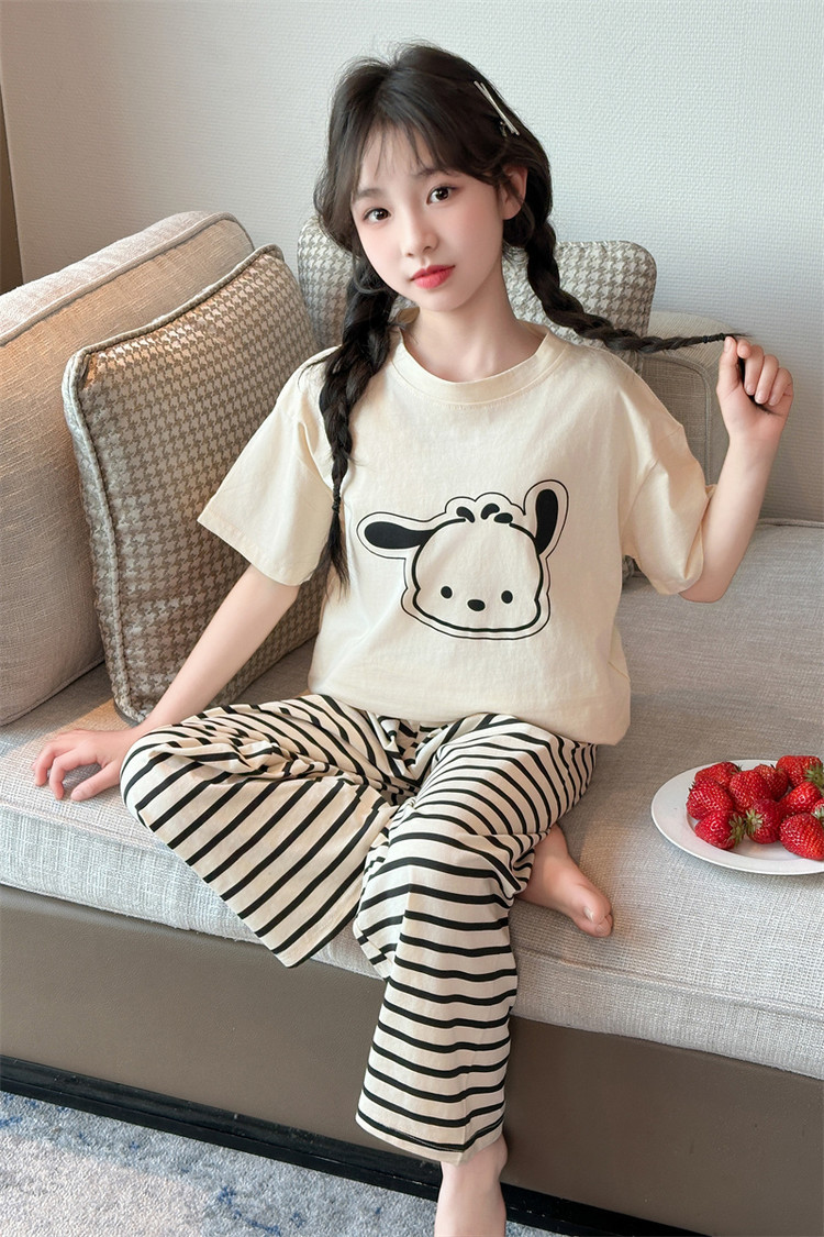 여자 만화 가정 의류 세트 여름 여자 캐주얼 반팔 바지 순수 코튼 잠옷 귀여운 겉옷 3 피스 세트