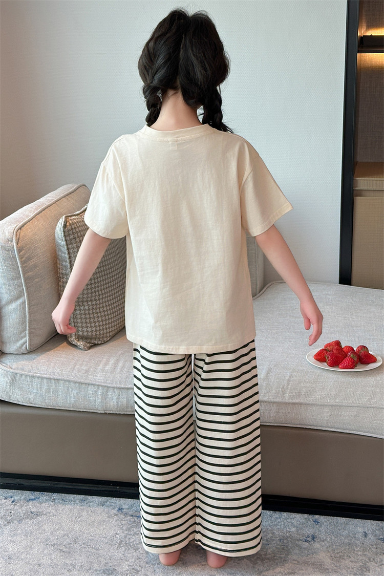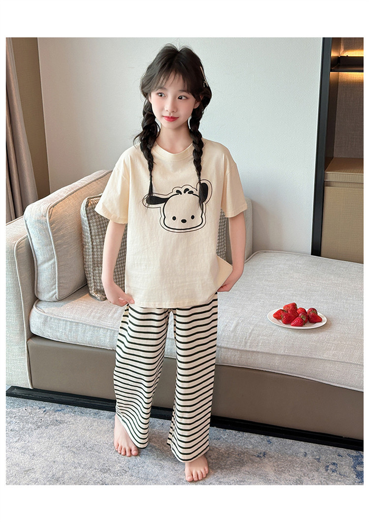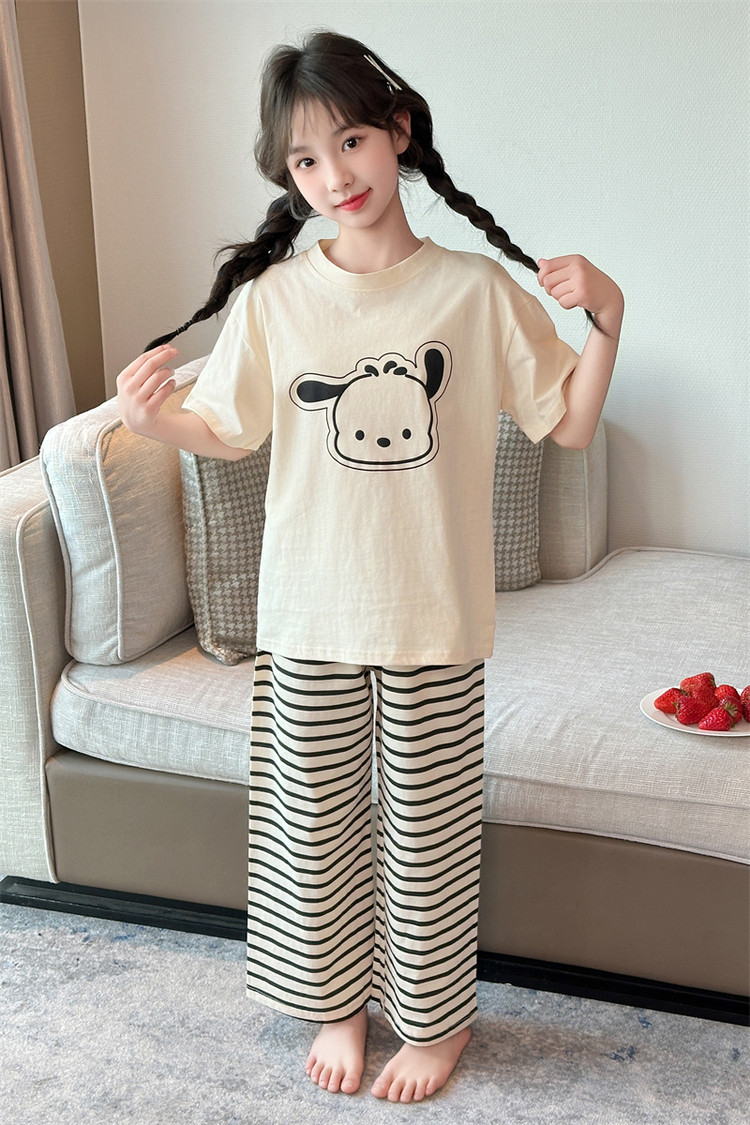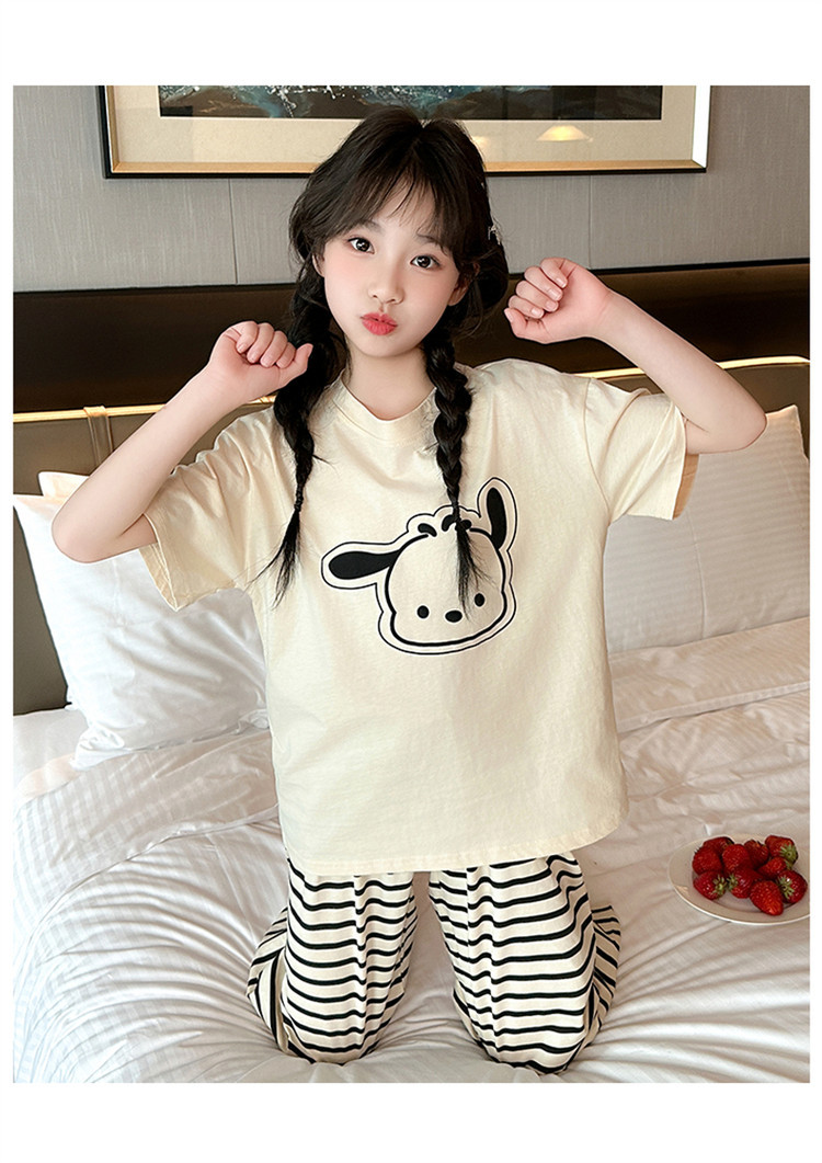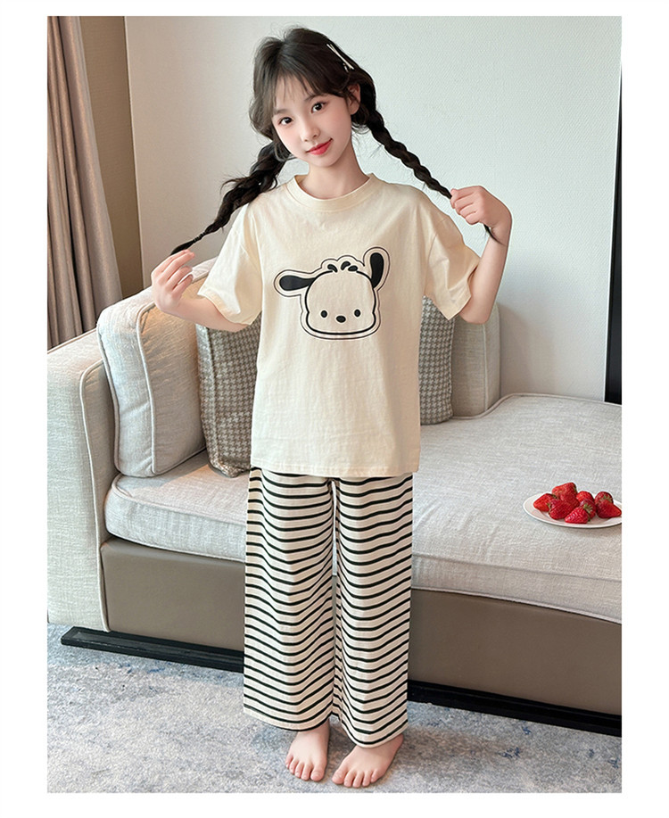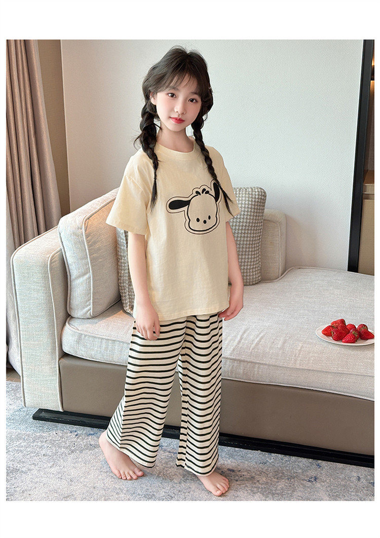 여자 만화 가정 의류 세트 여름 여자 캐주얼 반팔 바지 순수 코튼 잠옷 귀여운 겉옷 3 피스 세트