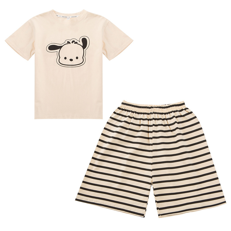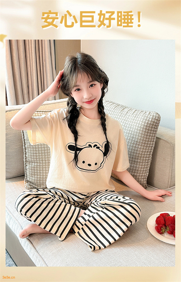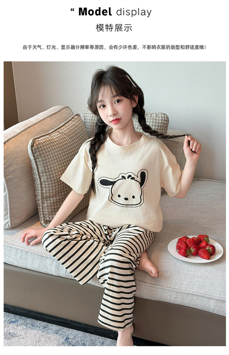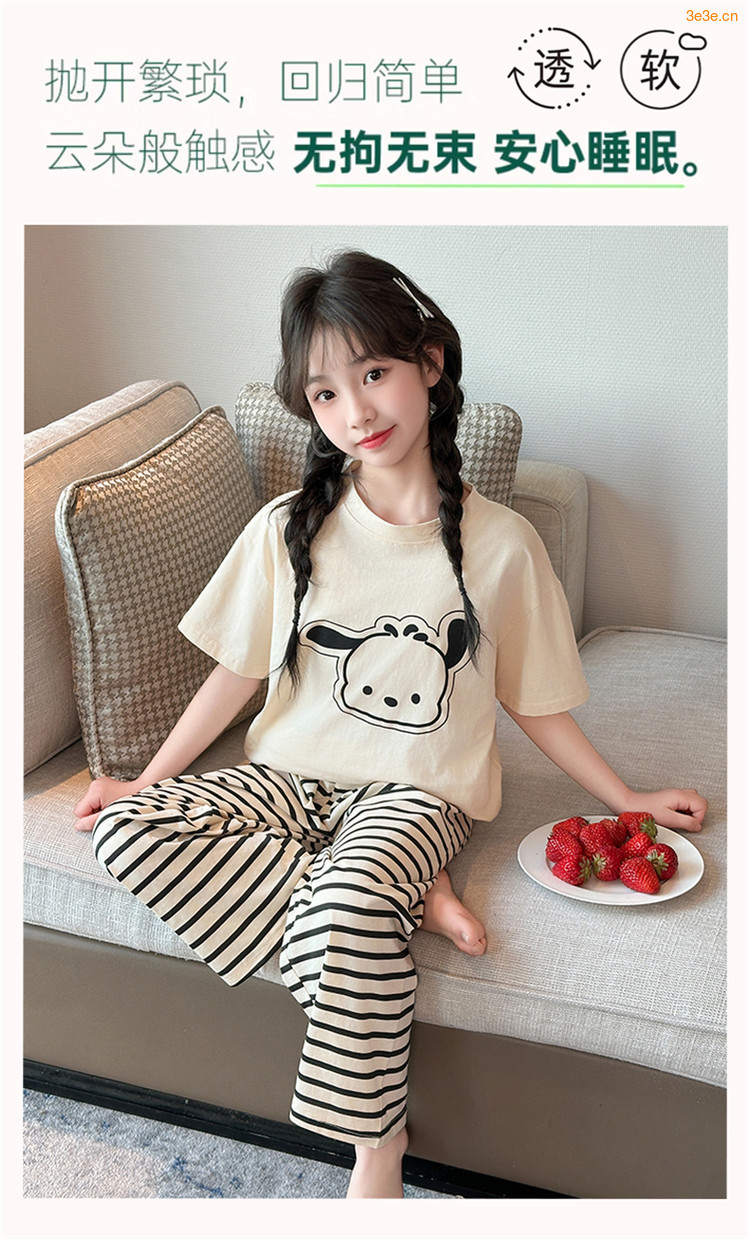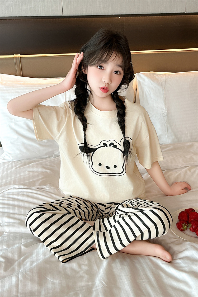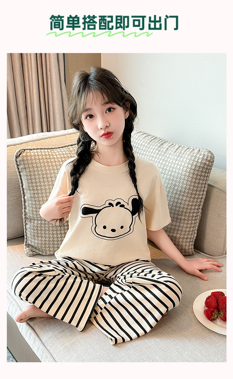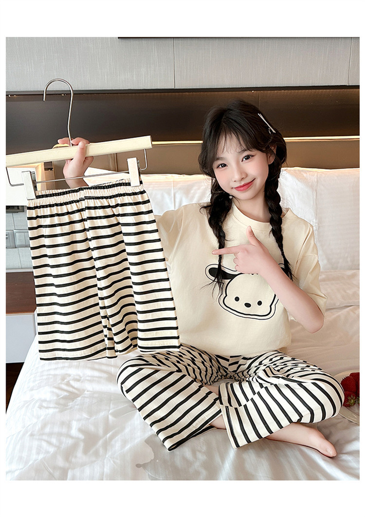 여자 만화 가정 의류 세트 여름 여자 캐주얼 반팔 바지 순수 코튼 잠옷 귀여운 겉옷 3 피스 세트스토어 가기