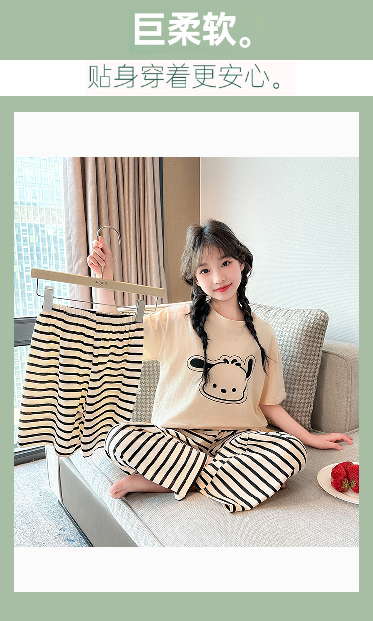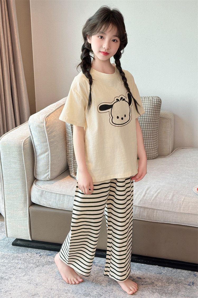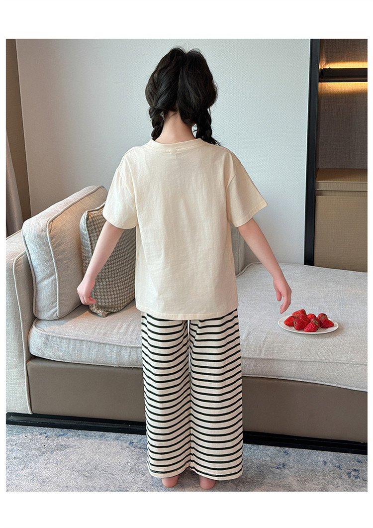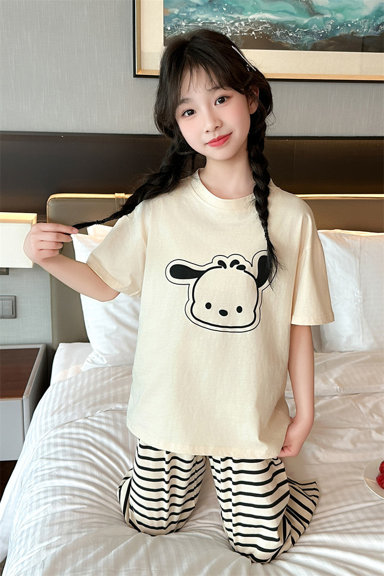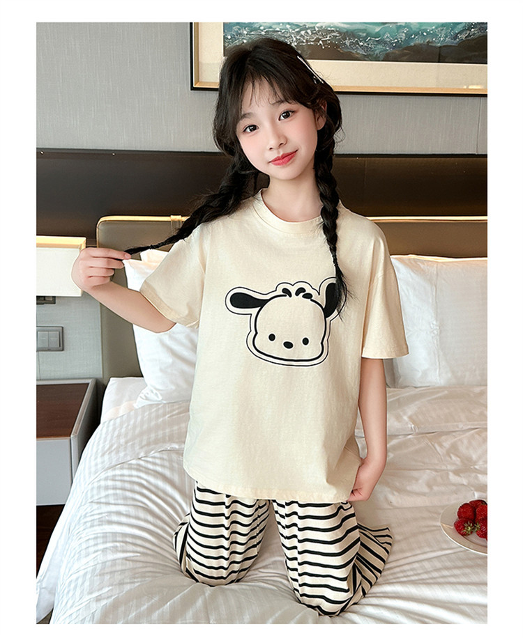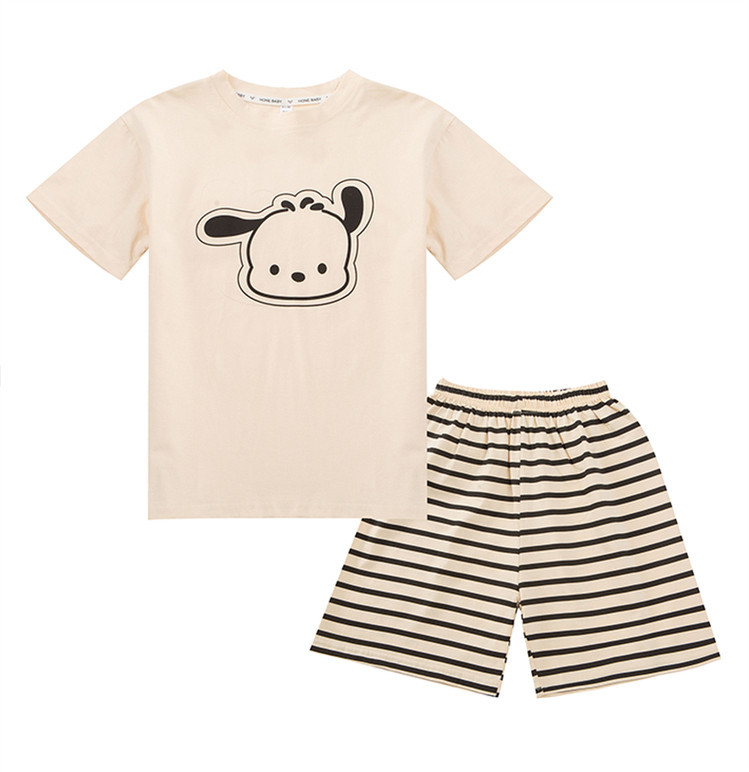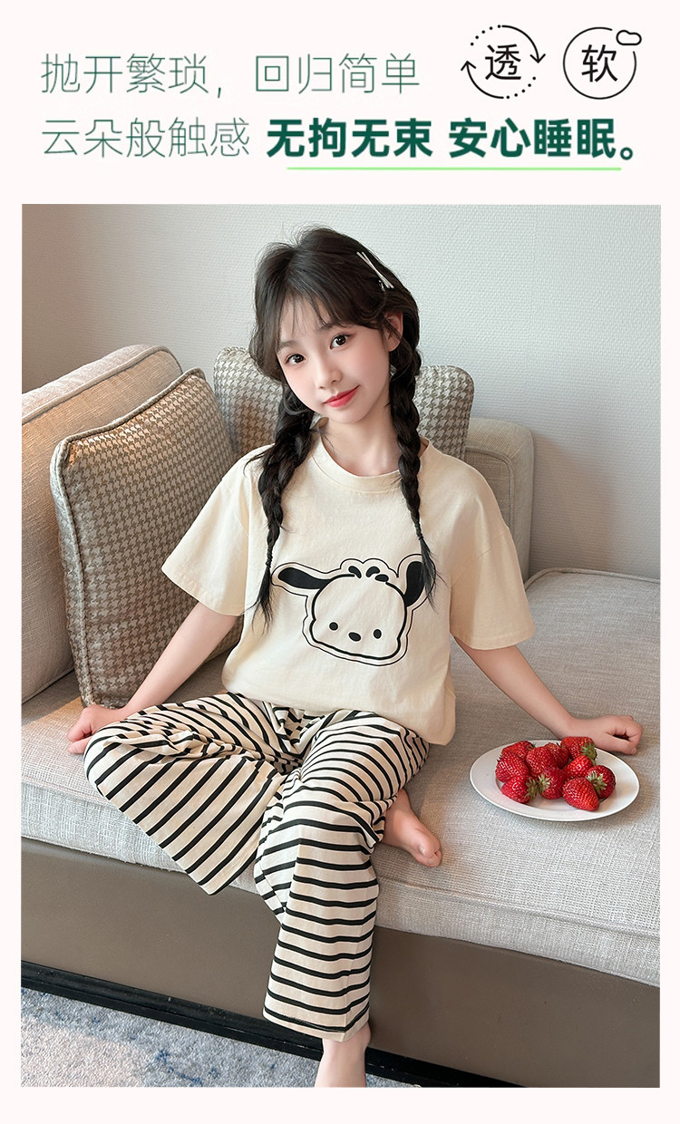 여자 만화 가정 의류 세트 여름 여자 캐주얼 반팔 바지 순수 코튼 잠옷 귀여운 겉옷 3 피스 세트스토어 가기