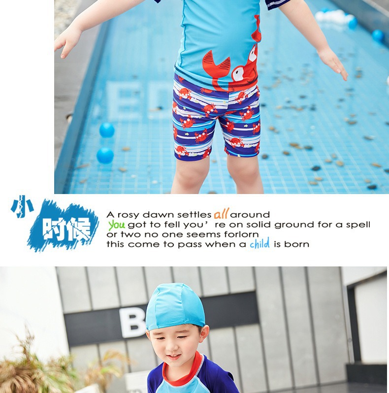 여름 새로운 어린이 수영복 소년 게 어린이 아기 스플릿 복서 수영 trunks 도매 수영 모자 수영복스토어 가기