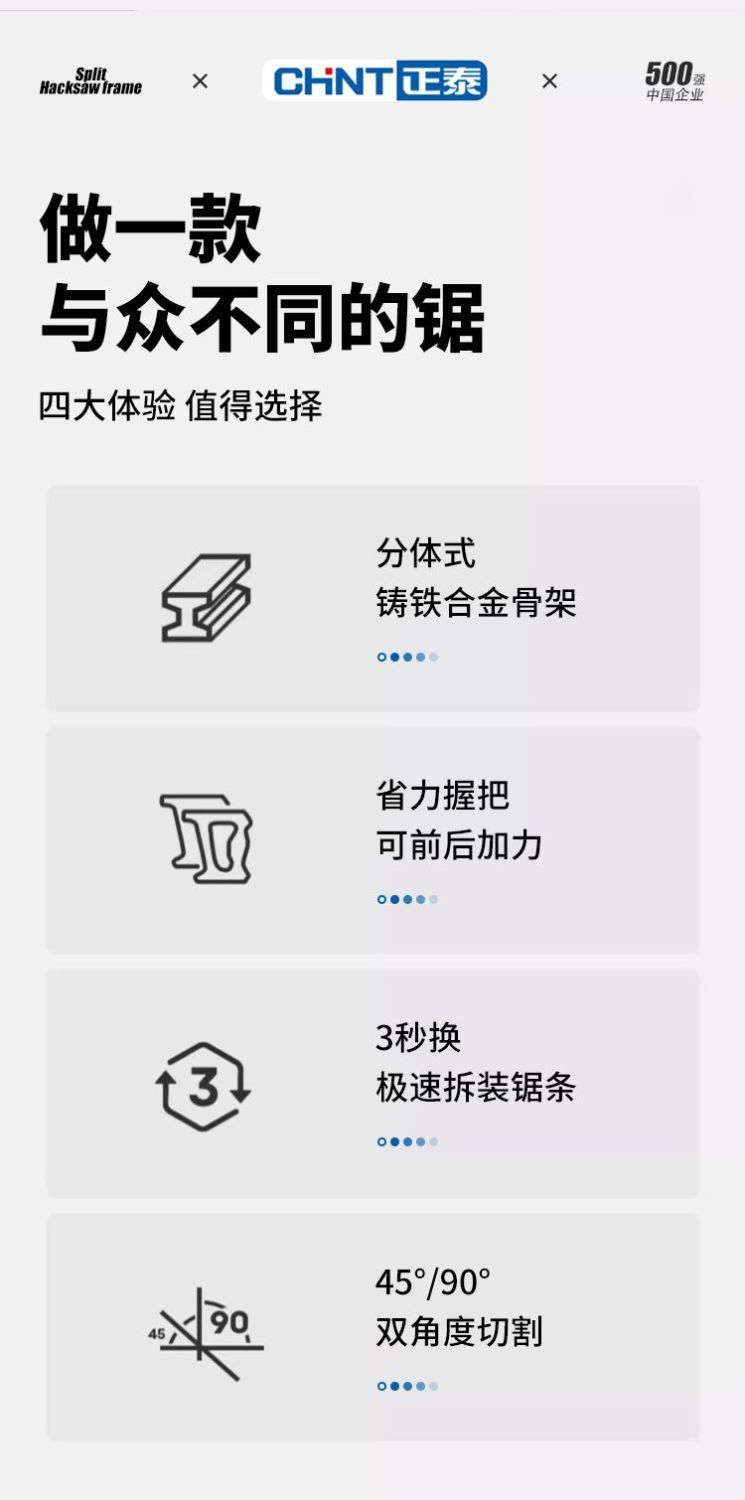 • 조정 가능하고 내구성이 뛰어난 쇠톱 프레임 + 탄소강 톱날 4개
