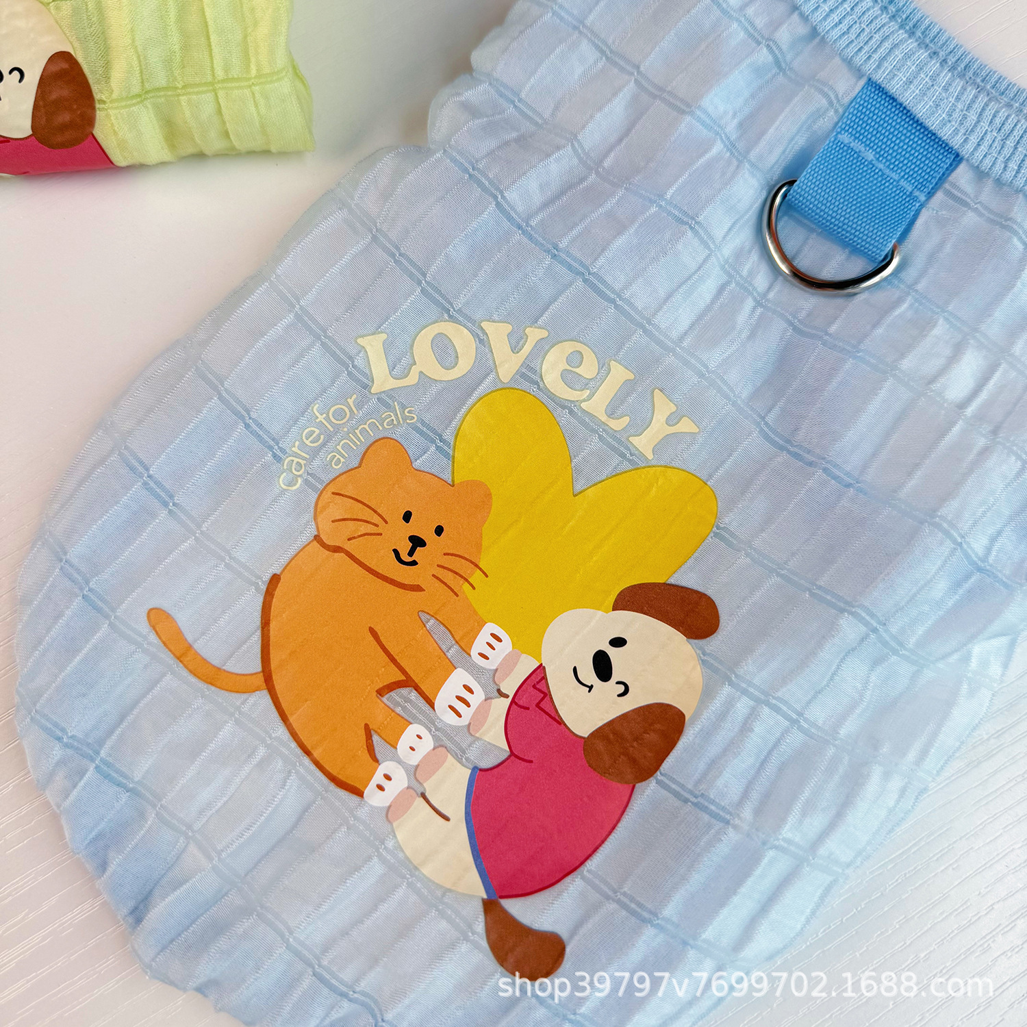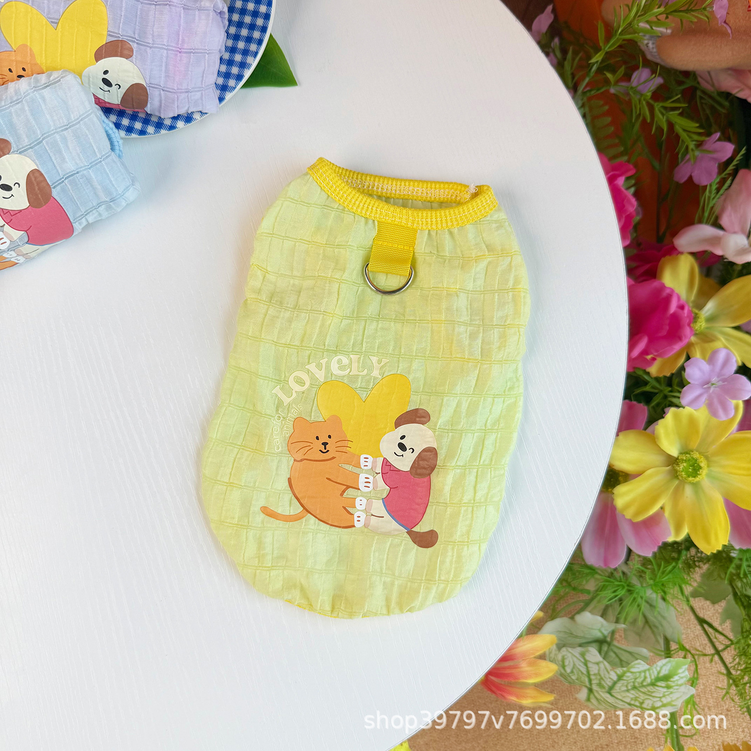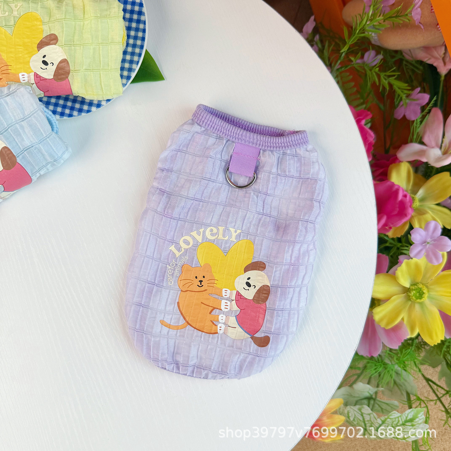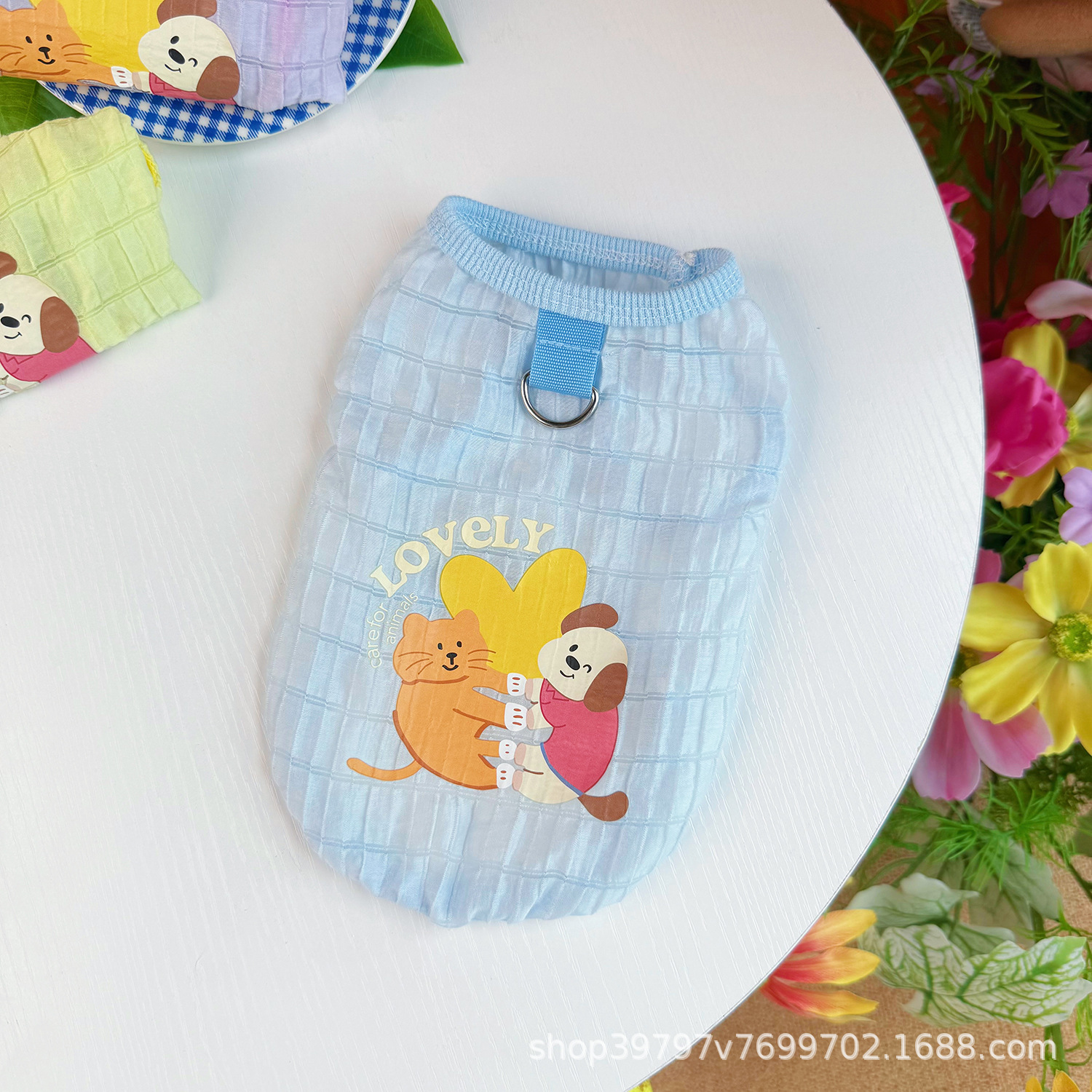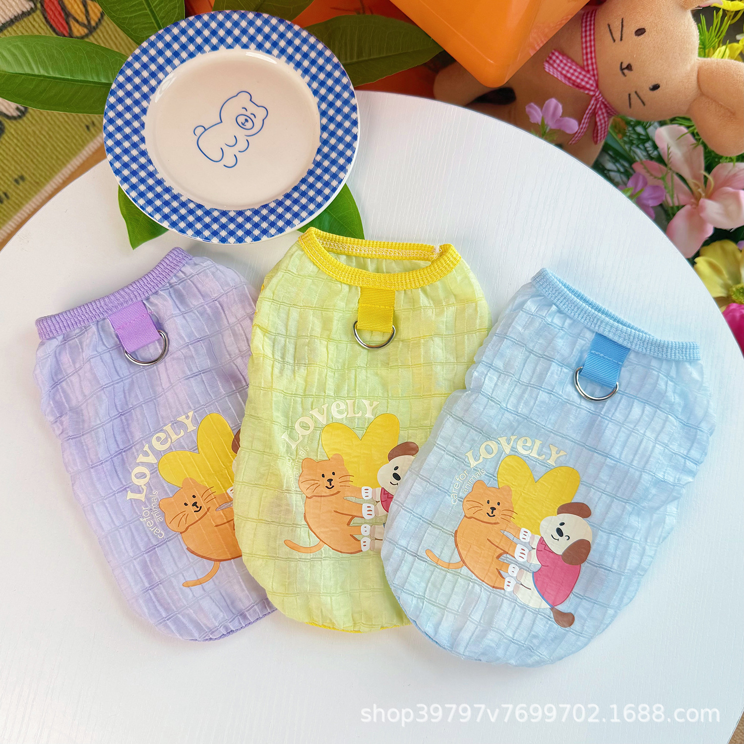 오리지널 애완 동물 의류 여름 새 개와 고양이 옷 버블 체크 무늬 조끼 탈모 방지 통기성 도매 배송스토어 가기