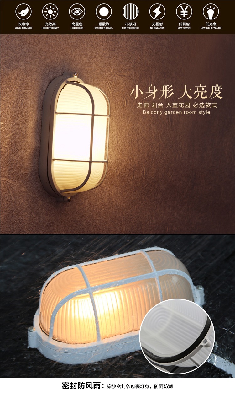 야외 벽 램프 타원형 방수, 방습 및 방폭 램프 3중 방수 램프 야외 통로 복도 사우나 룸 욕실 램프 전체 알루미늄스토어 가기