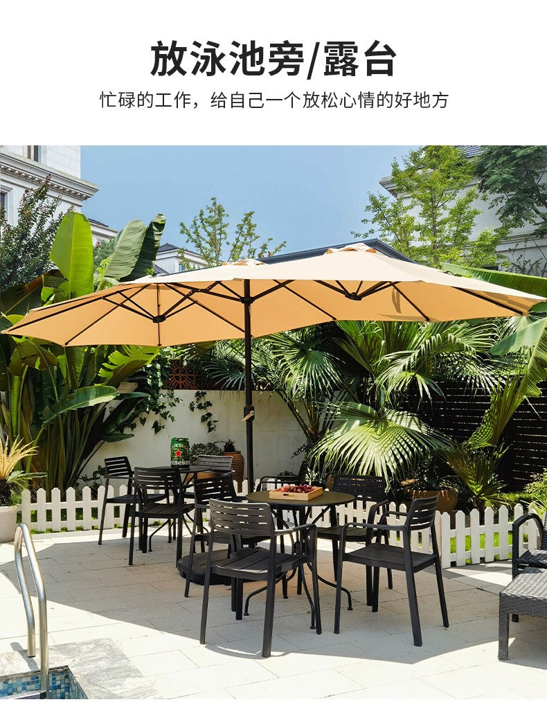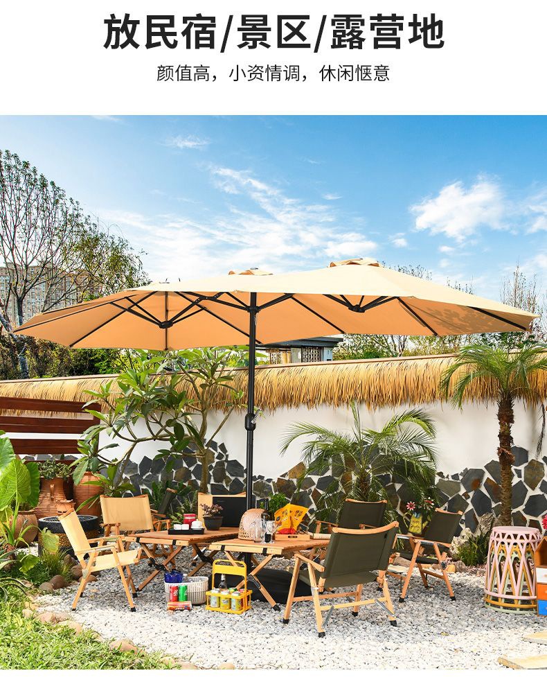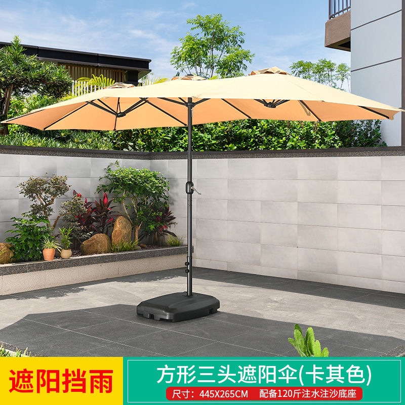 Mojia 야외 가구 우산 회전 3 헤드 중간 기둥 우산 대형 태양 우산 야외 카페 상업용 파라솔 안뜰