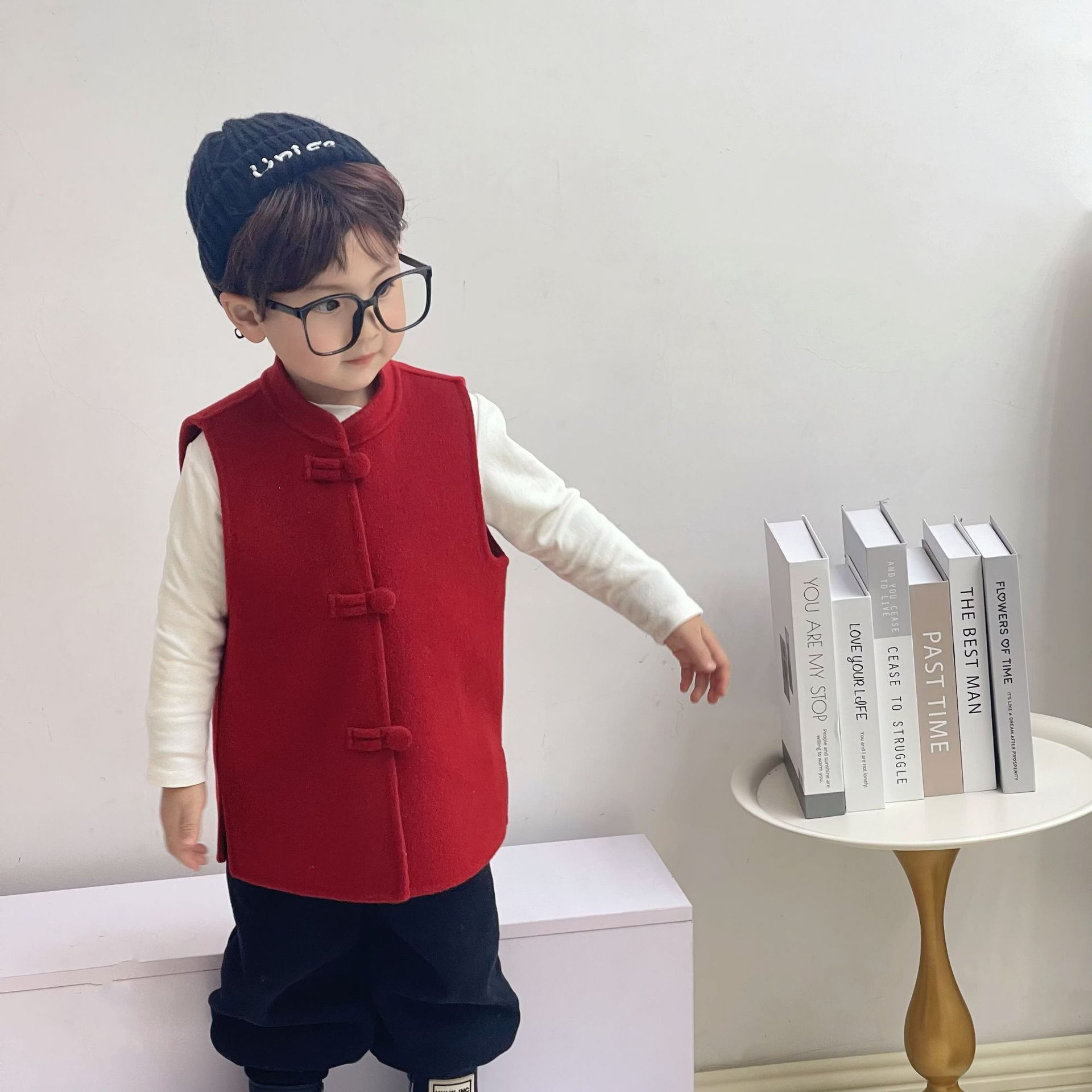 25년 새로운 소량 맞춤형 순수 양모 아동 조끼 가을, 겨울 짧은 아동 코트