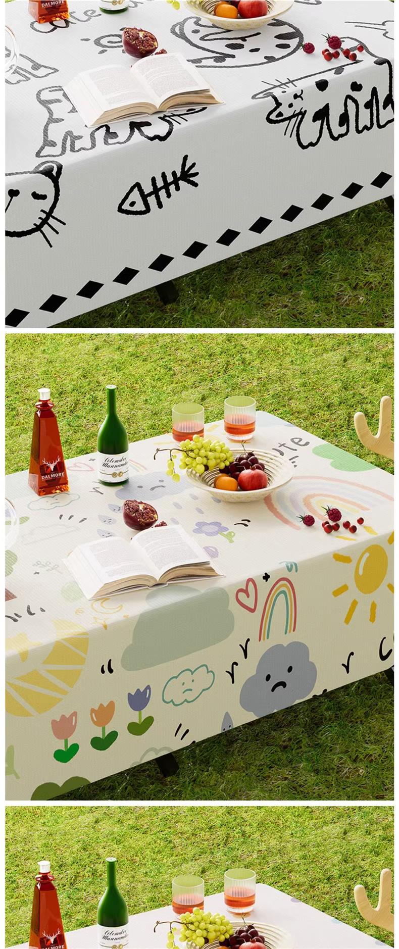 Ins 스타일 야외 캠핑 식탁보 오일 방지 및 방수 노워시 PVC 야외 식탁 화상 방지 및 단열 피크닉 식탁보