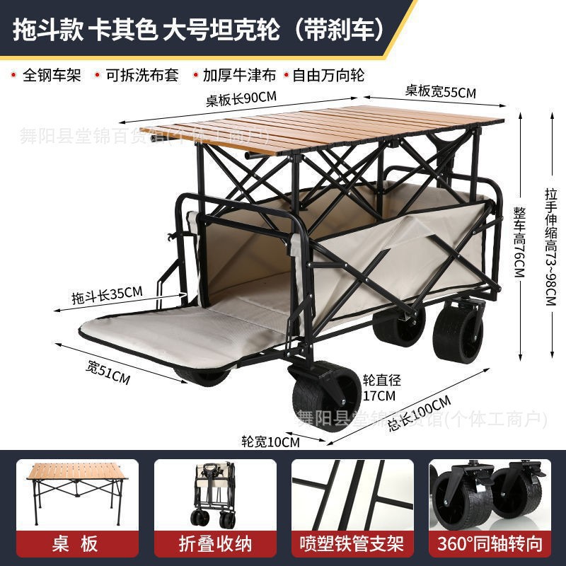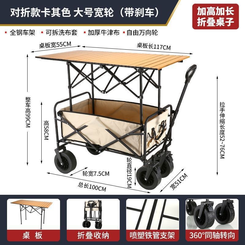 • [상위 구성] 카키/ 10inch 탱크 더블 브레이크 유니버설 휠 - 스톨 접이식 테이블 + 야외 캠핑카 /