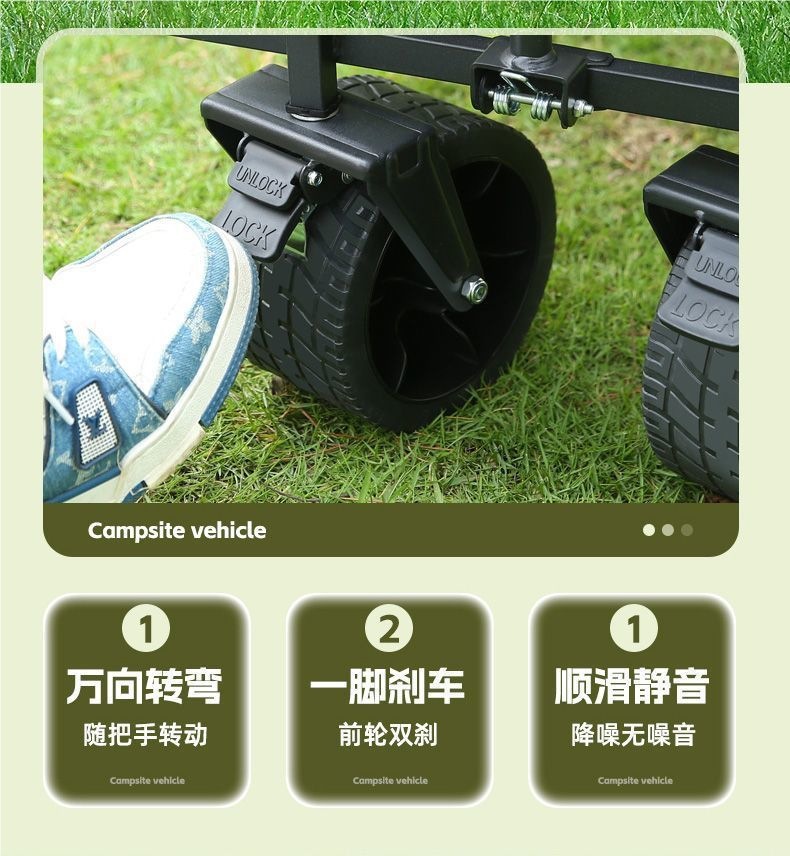 • [상위 구성] 카드 그린/ 10inch 탱크 더블 브레이크 유니버설 휠 - 스톨 접이식 테이블 + 야외 캠핑카 /