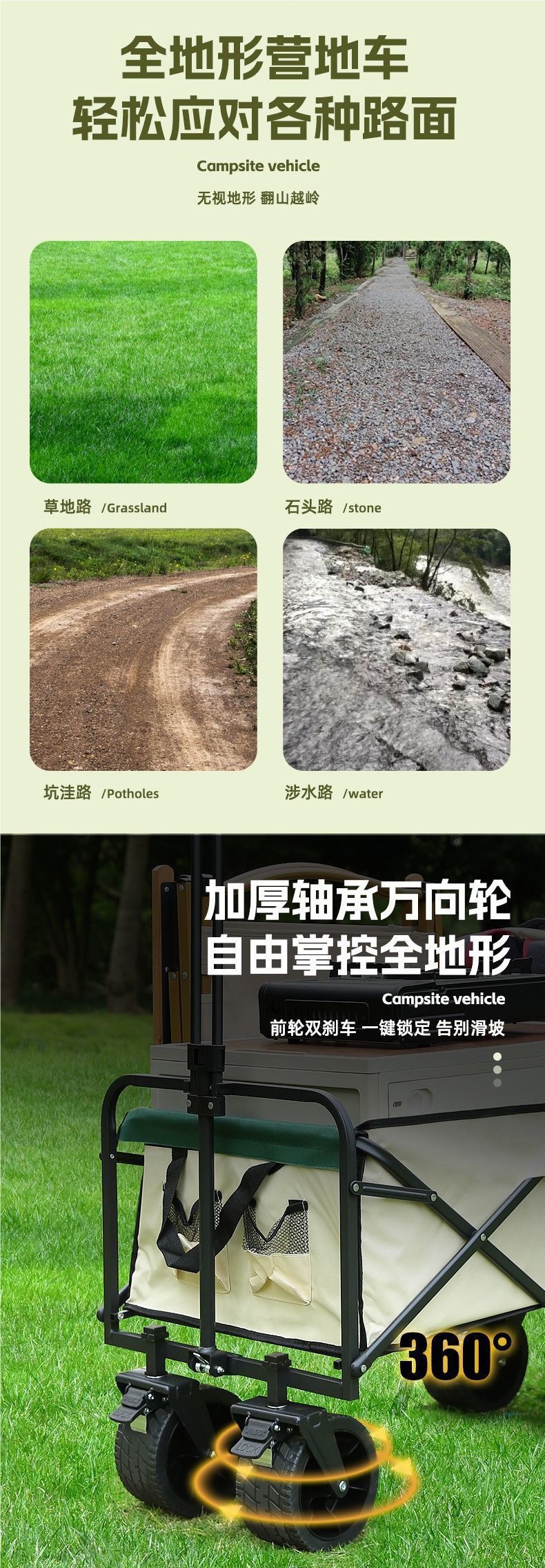 • 카드 그린/오프로드 휠 대형/ 8inch 더블 브레이크 유니버설 휠 업그레이드/야외 캠핑카 + 접이식 데스크탑