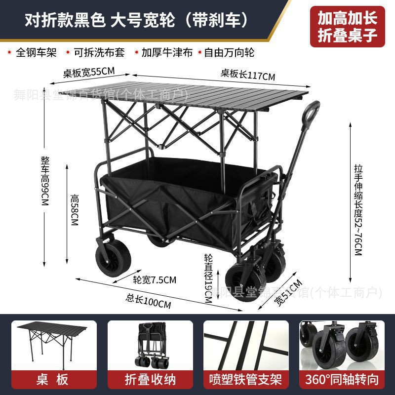 • 블랙/대형 오프로드 휠/ 8inch 더블 브레이크 유니버설 휠 확장 및 높이 조절 접이식 테이블 + 야외 캠핑카/
