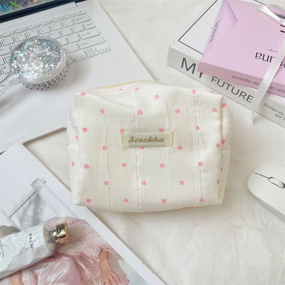 56171 스트라이프 러브 화장품 가방 휴대용 여행 대용량 세면 용품 메이크업 포장 작은 사각형 가방 보관 가방