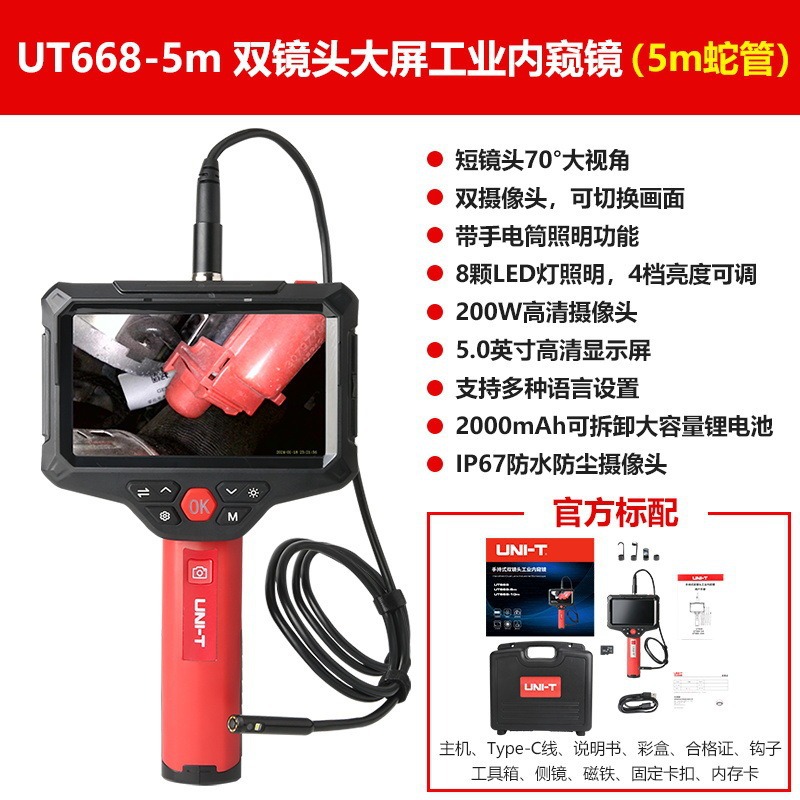 Uliide UT668 휴대용 듀얼 렌즈 산업용 내시경 HD 카메라 자동차 유지 보수 파이프라인 검사