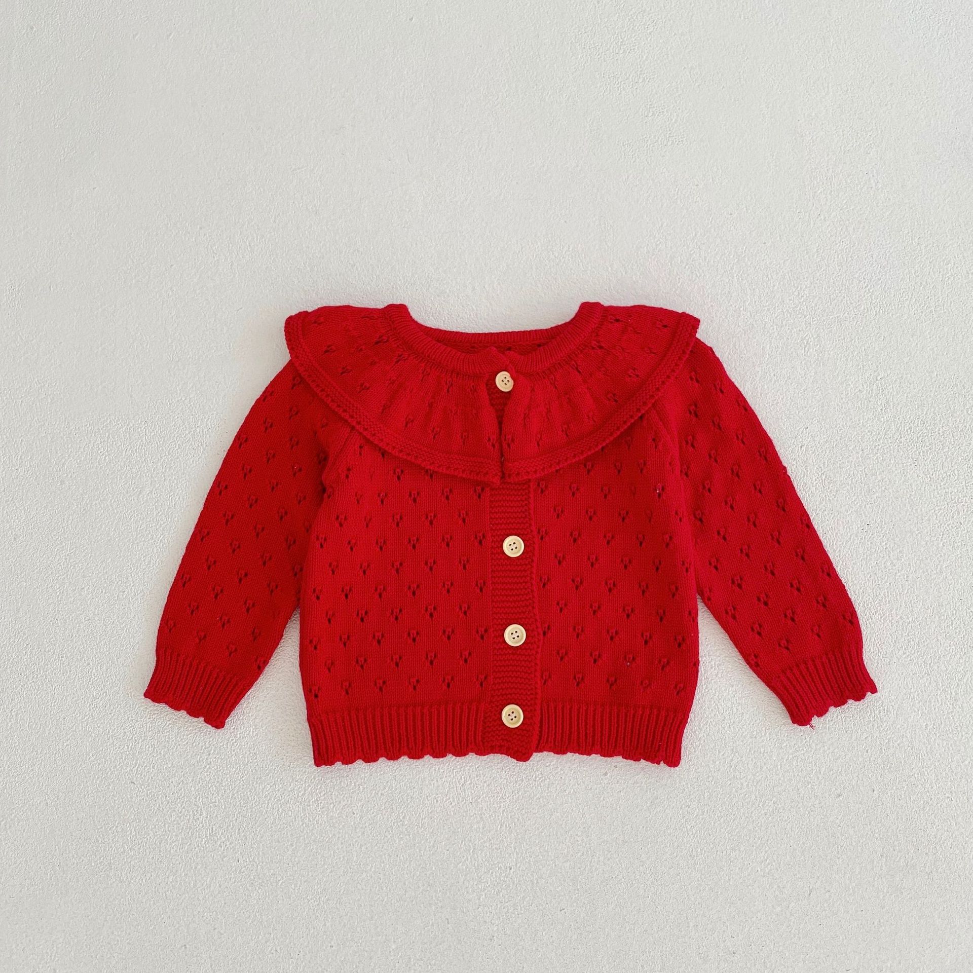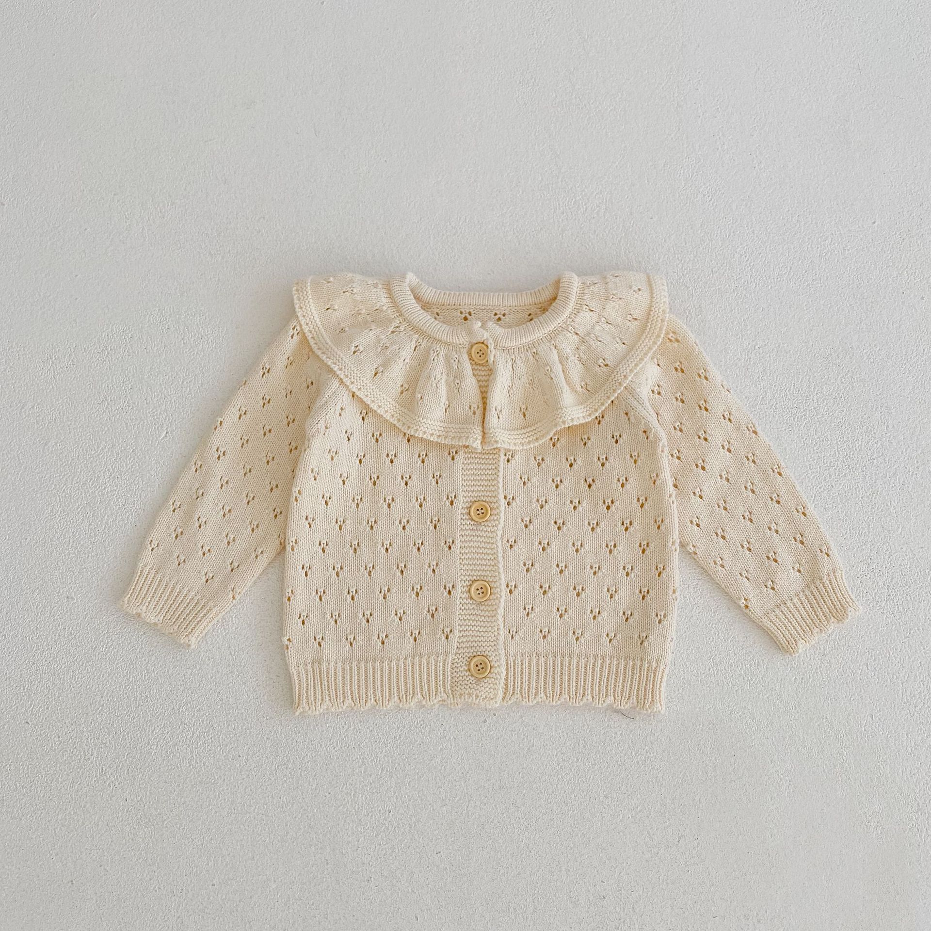 2025 중공 가을, 겨울 연잎 칼라 여성 니트 카디건 코튼 원사 베이비 긴팔 스웨터 재킷 ins